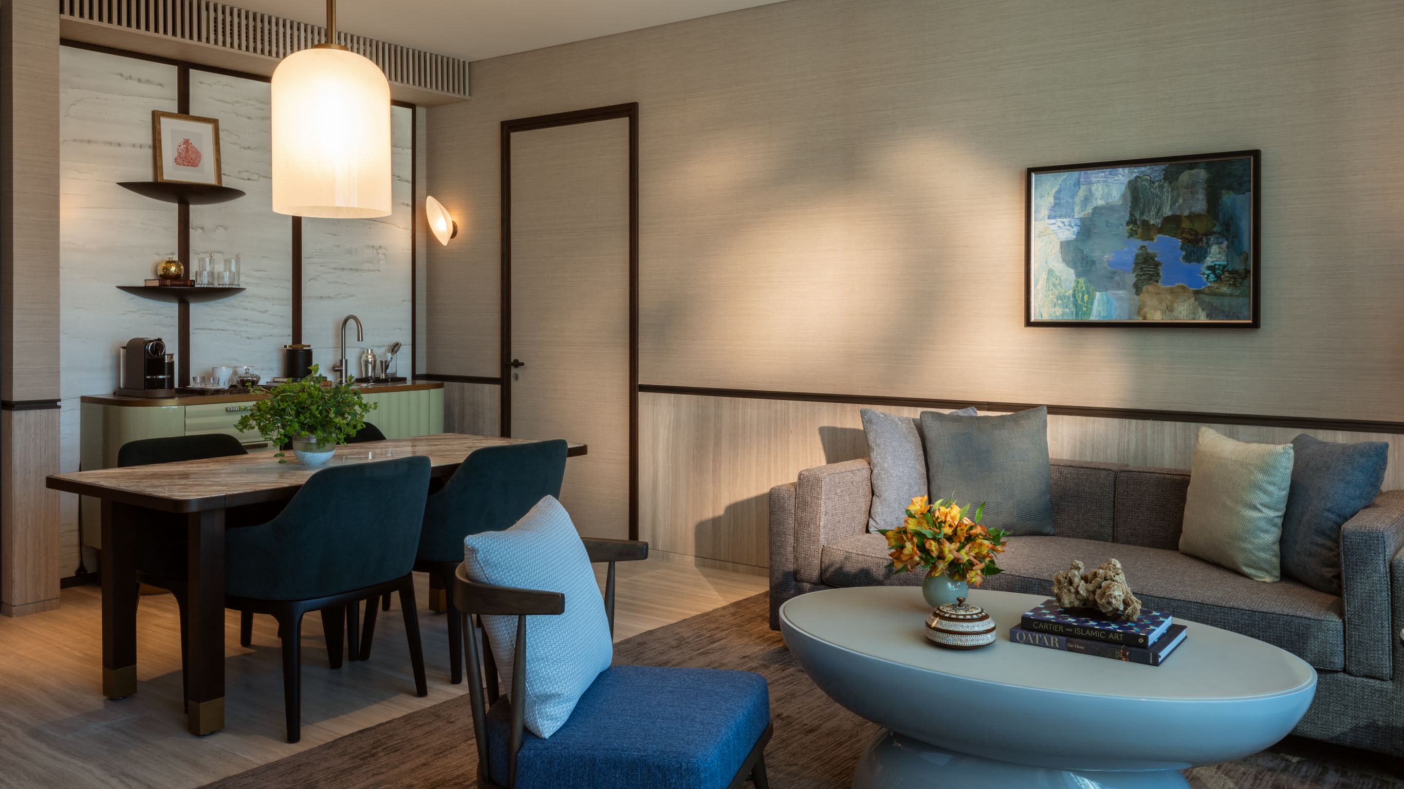 حلّق عاليًا في سماء لوسيل، فيجمع جناح مانور بين الفخامة العصرية والتصميم المدروس الذي يعكس أرقى ملامح التراث والثقافة القطرية. يتربّع جناح مانور على مساحة 121 مترًا مربعًا (1302 قدم مربعة)، ويضم منطقة معيشة كبيرة مع طاولة طعام لأربعة أشخاص وإطلالات مذهلة على الخليج العربي، وغرفة نوم منفصلة بسرير كينغ ومنطقة تغيير ملابس واسعة. يكتسي الحمام الفخم برخام سارانكولين فرساي الفرنسي ويضم حوضين لغسل الوجه، ودشًا مطريًا مزدوجًا، وحوض استحمام عميقًا. تكتمل روعة التجربة بإمكانية الدخول إلى ردهة المانور الراقية، وتسجيل وصول مبكر أو مغادرة متأخرة؛ وخدمة كبير الخدم المتفاني، التي تشمل حزم وتفريغ الأمتعة مجانًا وكي حتى ثلاث قطع ملابس.