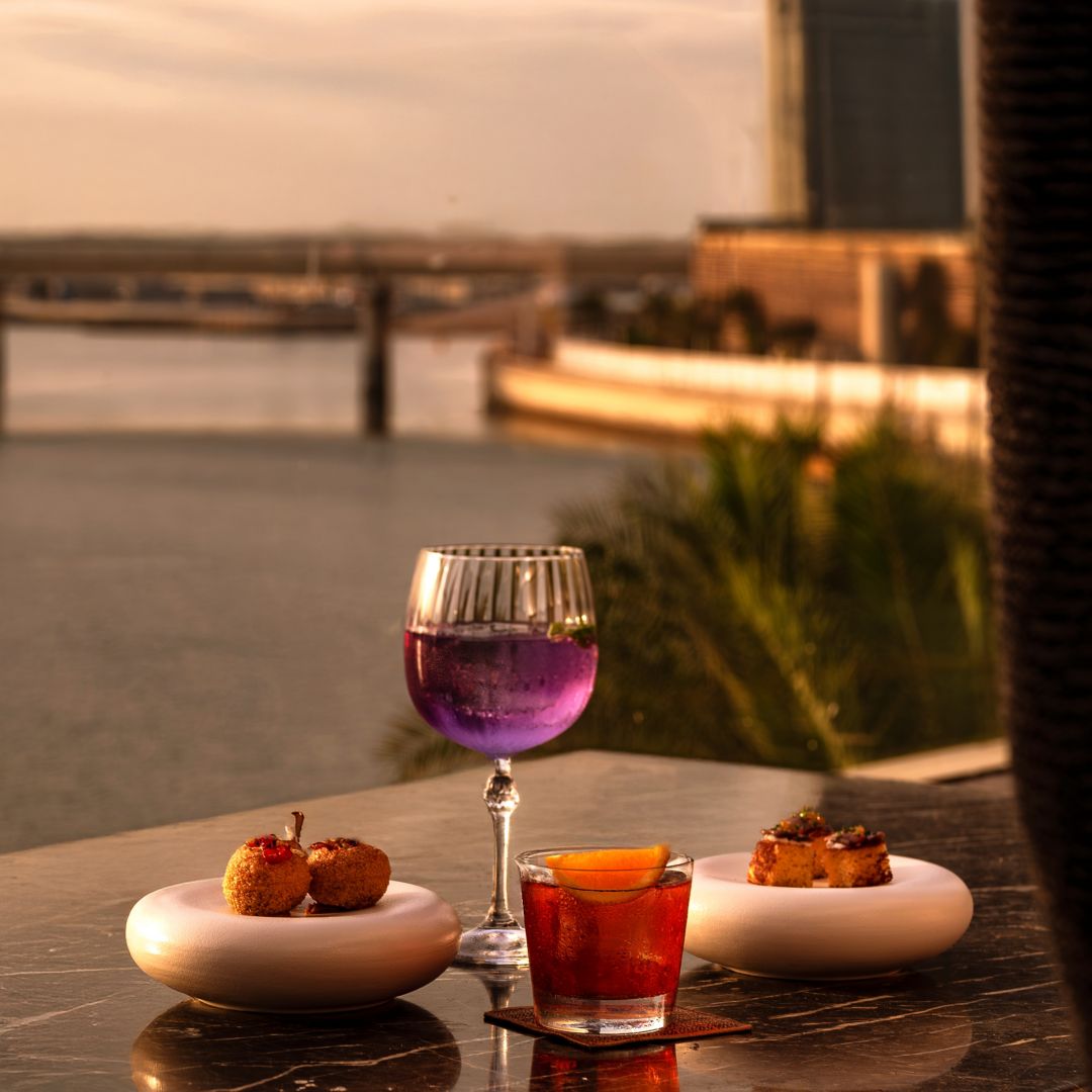 Unwind at the Hidden Bar with breathtaking sunset views and tranquil waterfront vibes. Enjoy two beverages from our sundowner selection, paired with a canapé ritual of refined, cutlery-free tapas — perfectly crafted for a relaxed evening escape.
