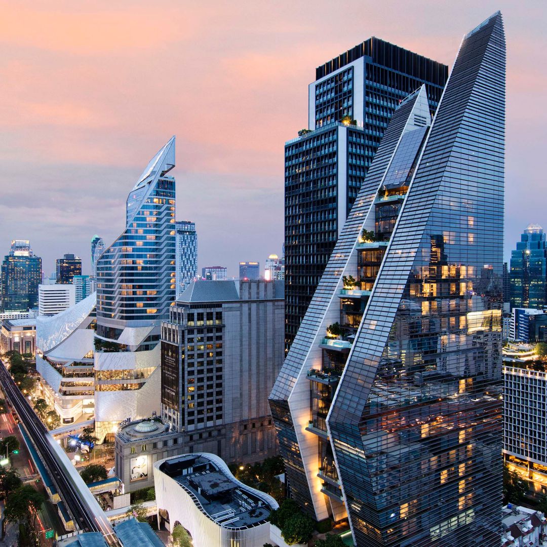 Discover Rosewood Bangkok, a visually stunning architectural marvel. Our luxury 5-star hotel in Bangkok is a sublime expression of the Thai spirit. /content/dam/rosewoodhotels/property/bangkok/en/images/overview/rwbkk-exterior-facade.jpg