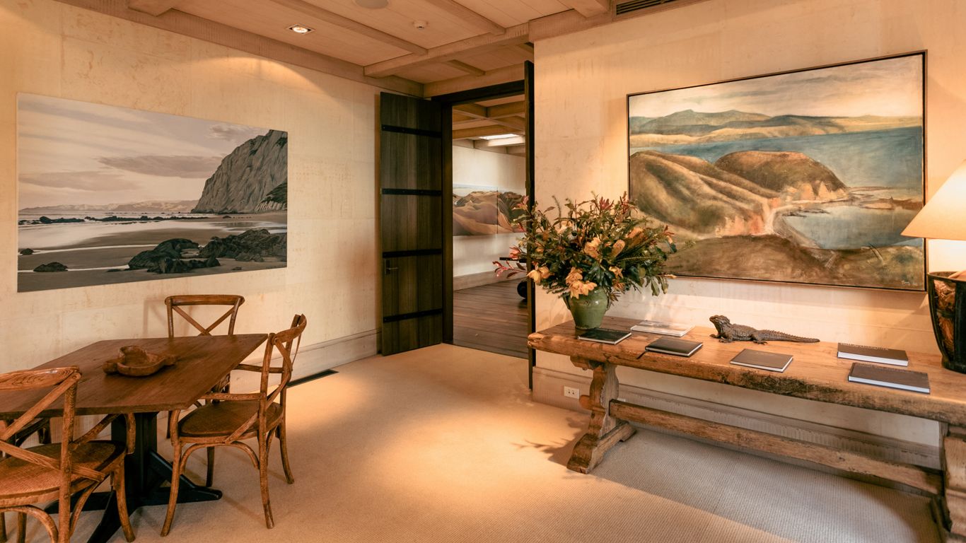 Aside from the important New Zealand works, the lodge collection also boasts an original Picasso plate. Demonstrating a fusion of tradition and modernity as he drew inspiration from both ancient pottery technique and contemporary painting, the plate adds a touch of whimsy and international sophistication to the farm luxe style of the lodge. These ceramics, made from the hand of one of the greatest and most influential artists of the 20th century, are highly collectable.