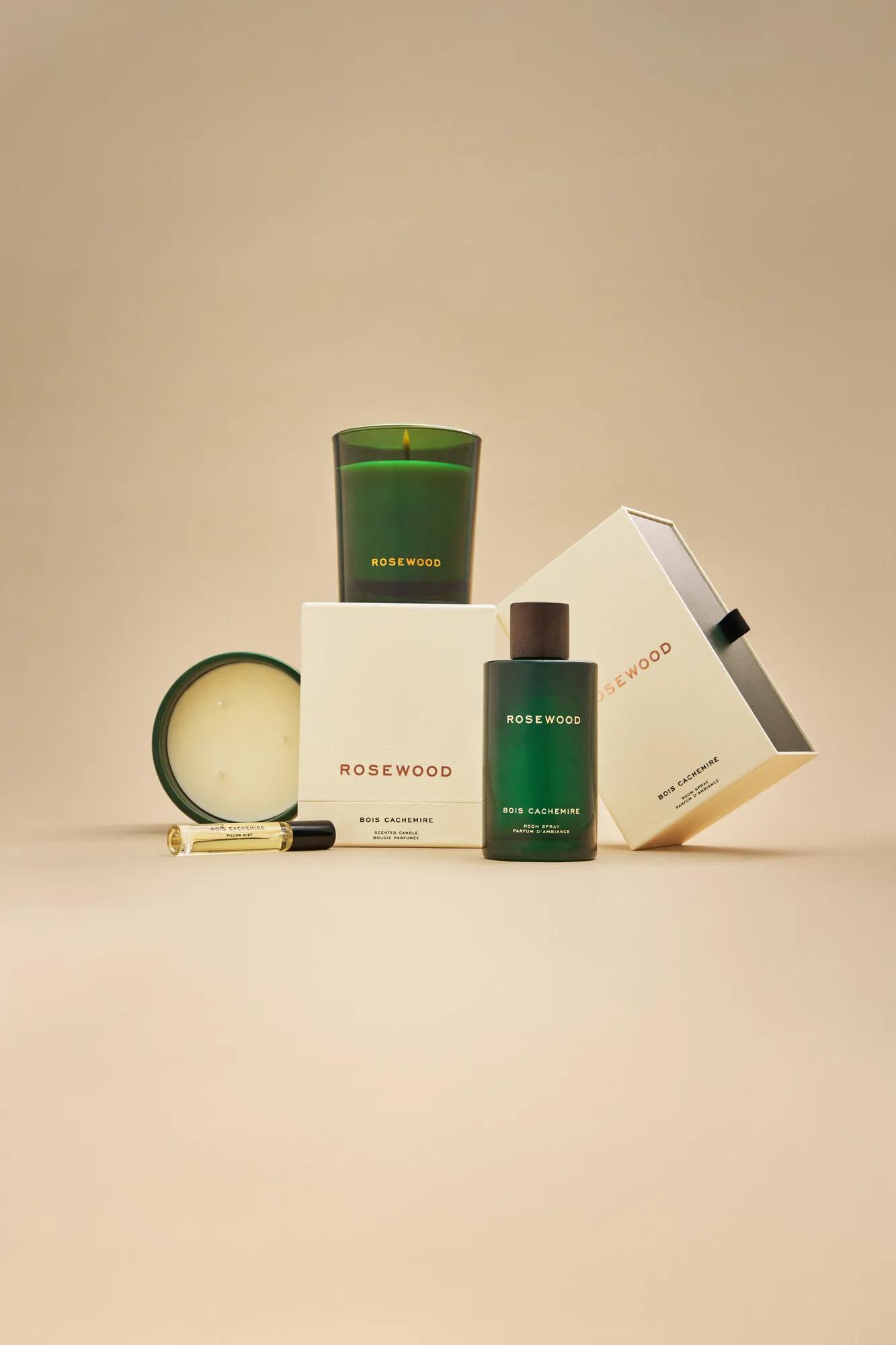 Within the Bois Cachemire collection, we created three products, a candle made with the highest concentration of fragrance, produced responsibly avoiding the use of palm oils or paraffins. A room spray for instant hits of scents and a complementary pillow mist for evening refreshment right before your head hits your pillow at night. Available for purchase at Rosewood, or through our online shop, these keepsakes are designed to be taken home, evoking memories of your stay.