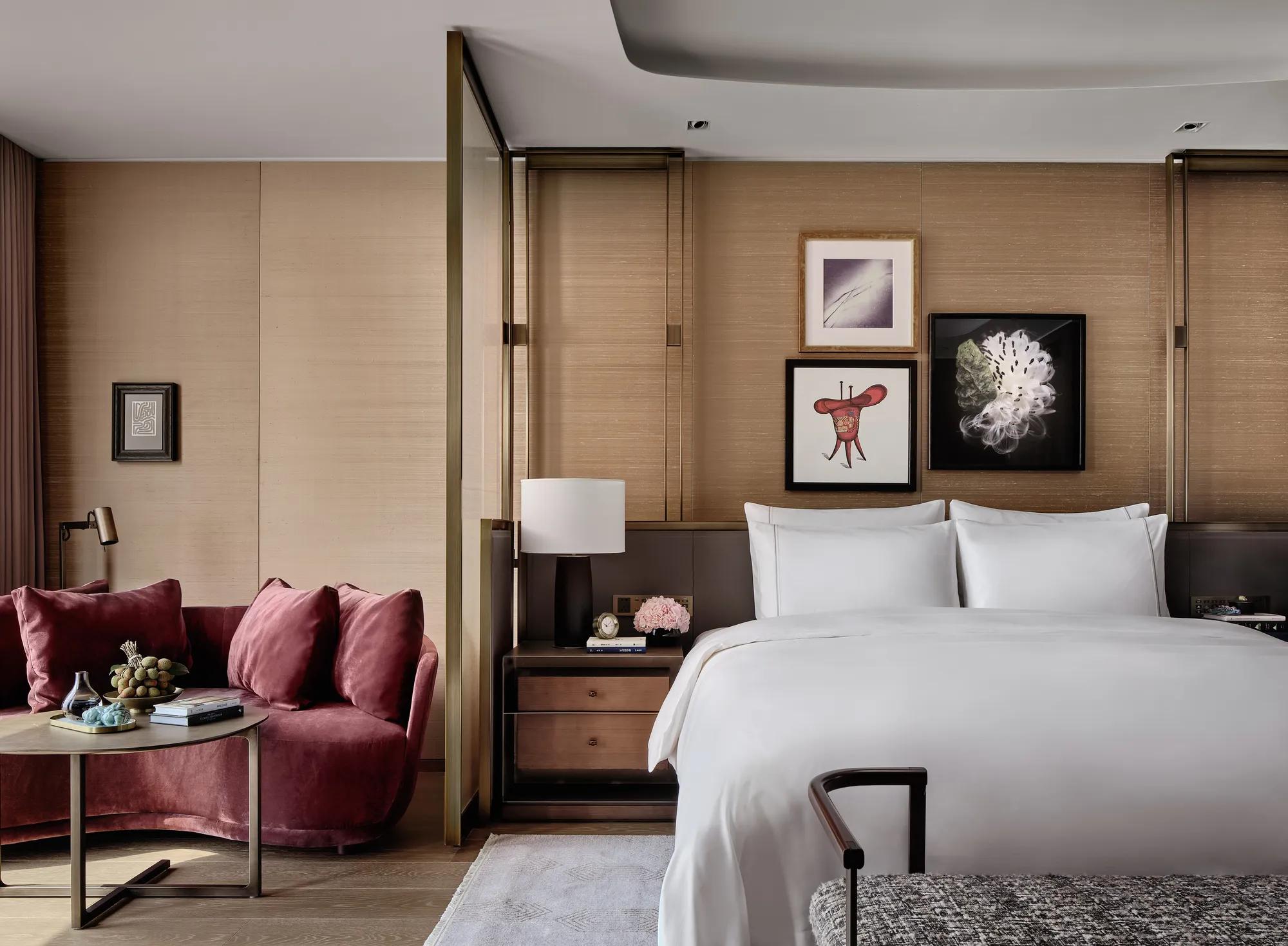 Discover the art of slow living. Our Deluxe Rooms offer generously proportioned living spaces. Contemporary furnishings and sleek interior details shine throughout, from the marble bathroom with a deep-soaking bathtub to curated artwork adorning the walls. High ceilings accentuate a sense of space, while thoughtful amenities provide personal touches of an urban refuge.