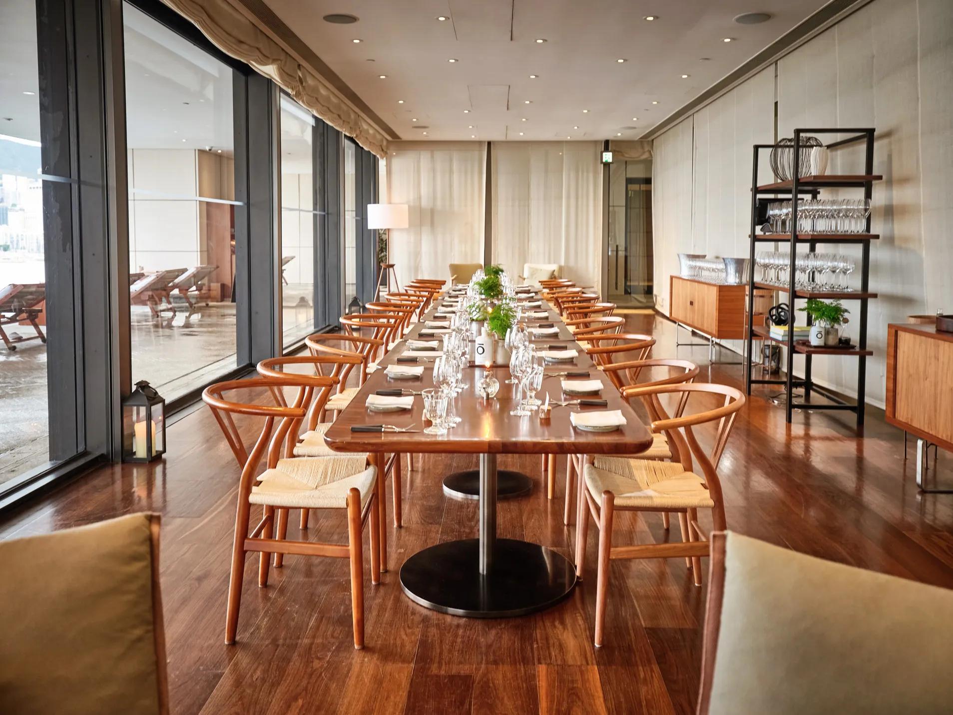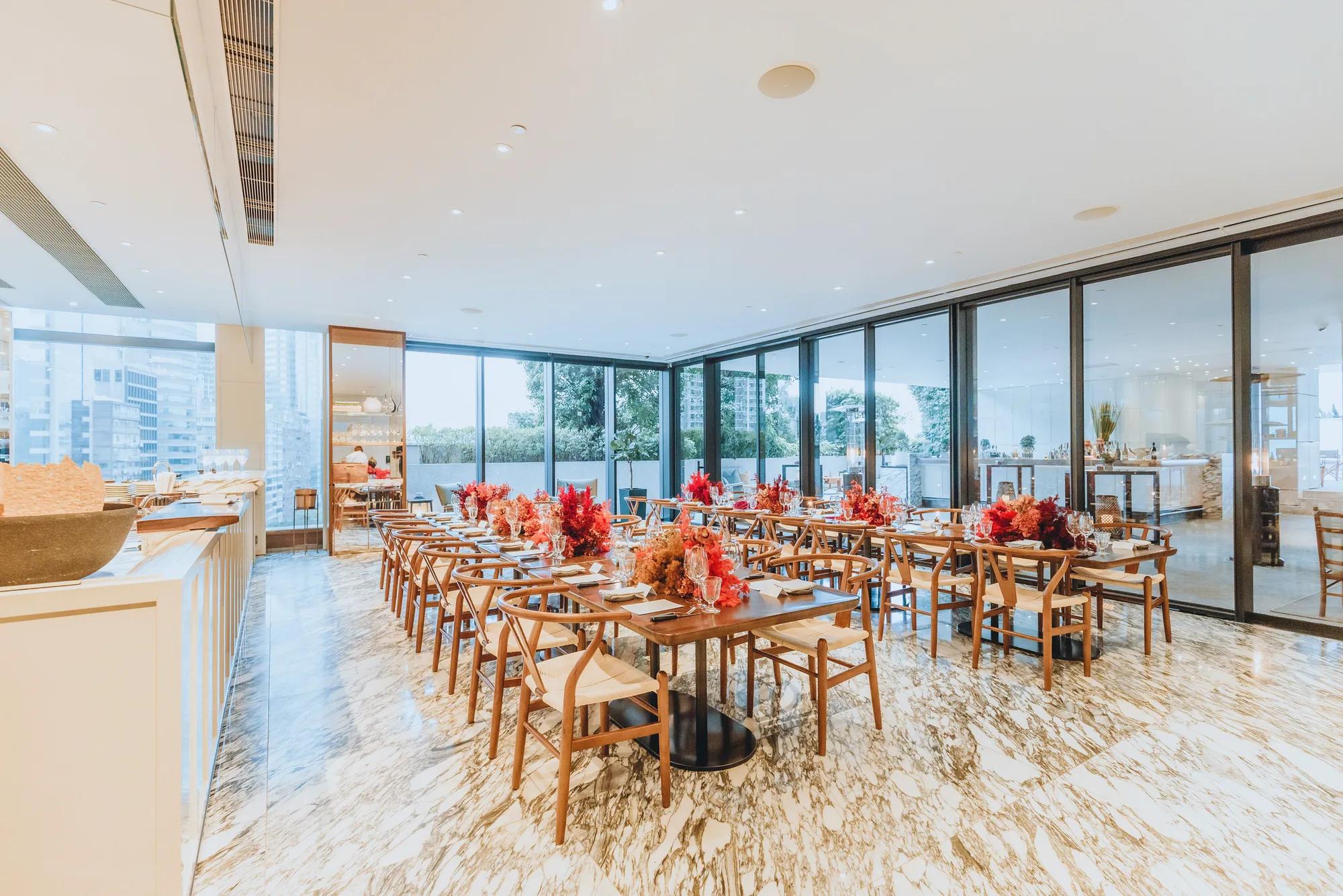 Elevate your event in the bright and breezy embrace of Botanical Kitchen. Featuring an open plan kitchen and floor-to-ceiling windows, our flexible venue extends seamlessly to an outdoor terrace where an all-weather private bar and covered seating await.The abundance of natural light and lush green outlook creates a perfect blend of elegance and nature.