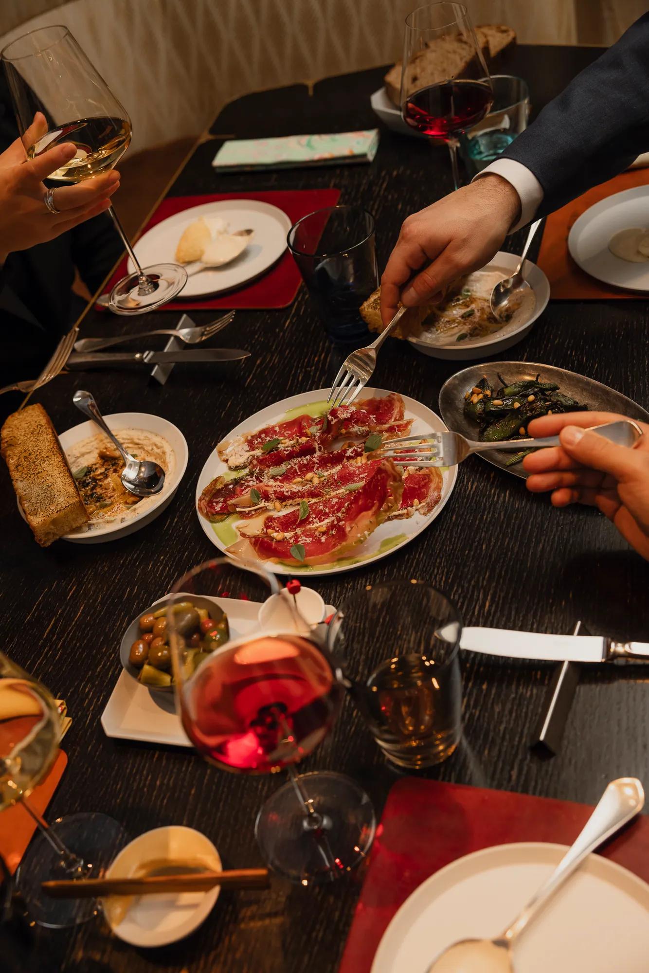 Guests can dine in the buzzing ambience of the restaurant designed by Tristan Auer, or on the terrace.