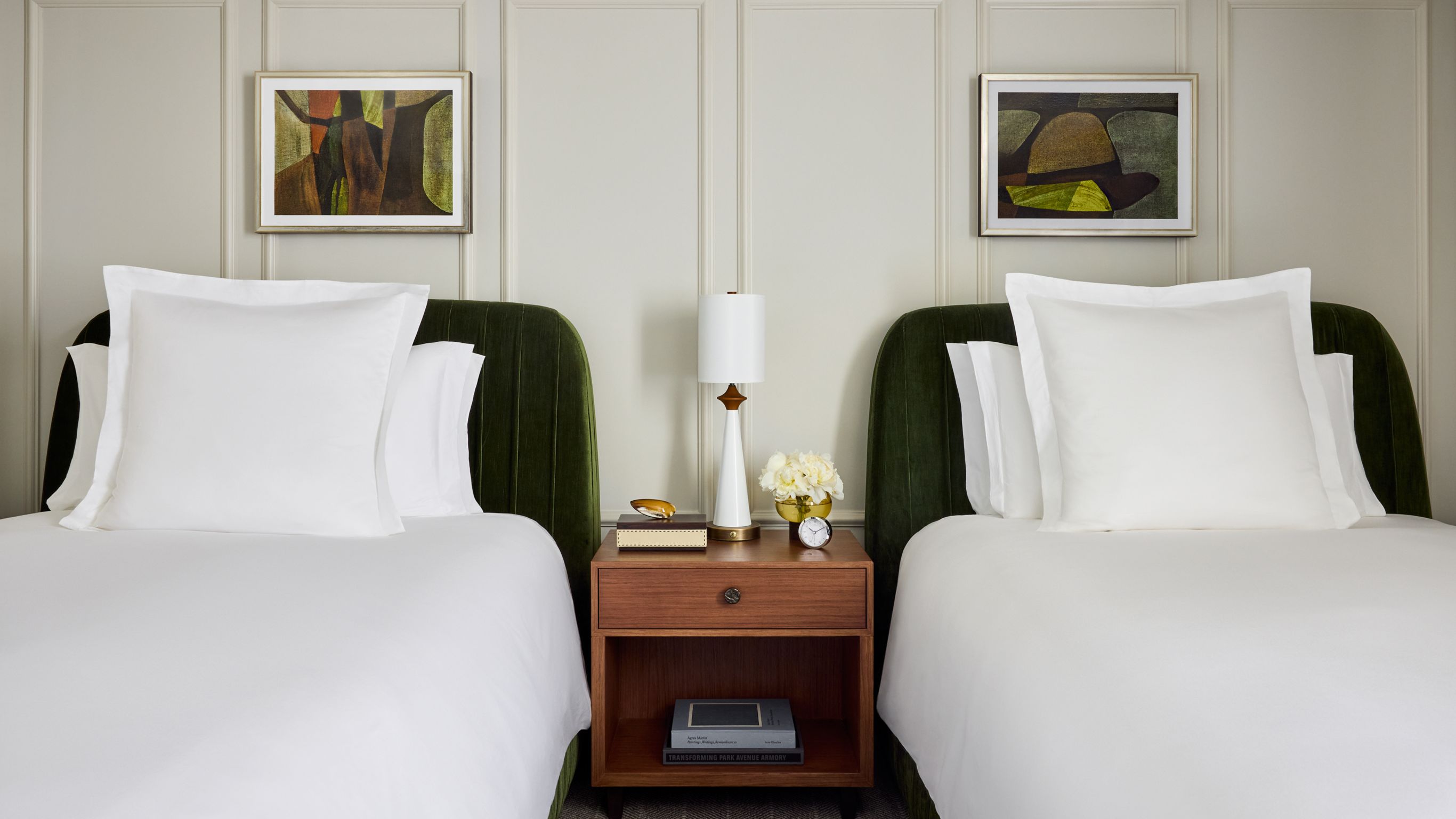 Sink into residential-style comfort in the inviting and elegant Superior Two Doubles City View accommodation, with 325 to 400 sq.ft. (30 to 37 sq.m.) of space. The recently renovated room sleeps up to four, with two double hand-tufted beds in luxurious green velvet, complemented by oak and brass benches upholstered in rich bouclé fabric. Feel instantly at home, thanks to a wealth of storage options and a spa-inspired bathroom with heated marble floors and a walk-in rain shower. Located across all floors of the hotel, these rooms overlook the Vancouver skyline, east toward Howe Street or south over the historic Vancouver Art Gallery.
