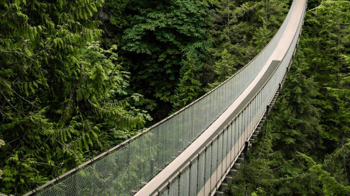 Capilano Suspension Bridge crosses to towering evergreens, cedar-scented rainforest air and Treetops Adventure, 7 suspended footbridges offering views 110 feet above the forest floor. The new Cliffwalk follows a granite precipice along Capilano River with a labyrinth-like series of narrow cantilevered bridges, stairs and platforms.