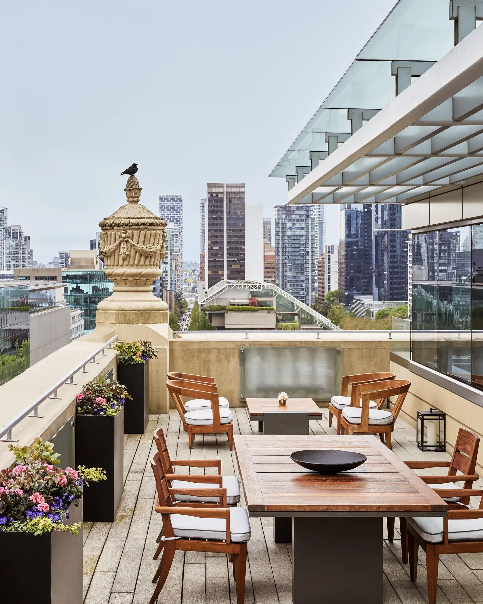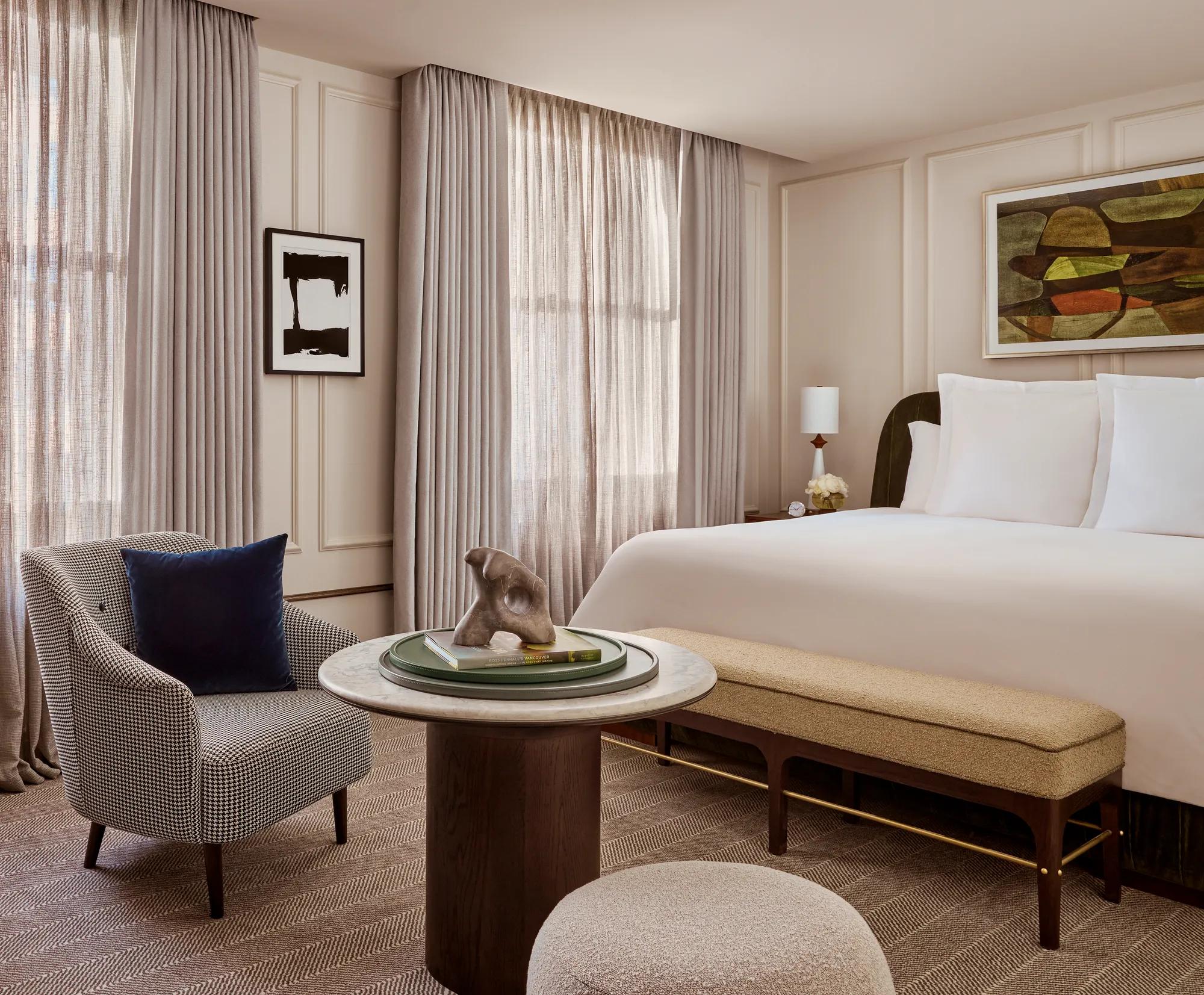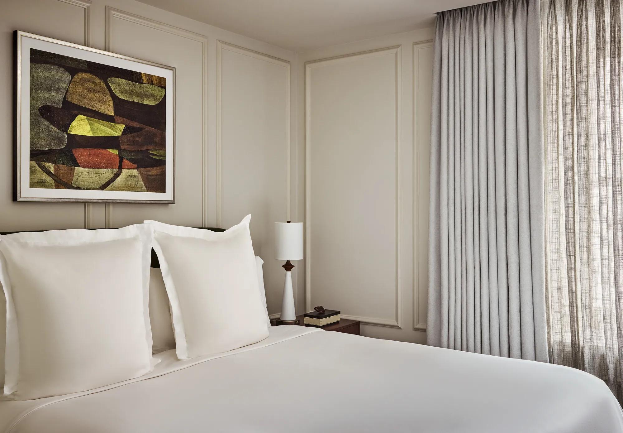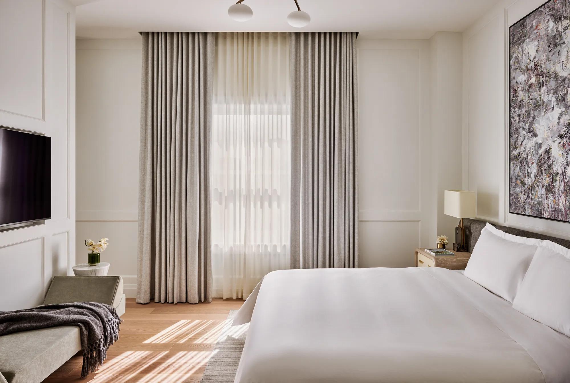 A serene retreat with a king bed, spa-inspired bath, and Downtown Vancouver views—a residential haven steeped in storied elegance