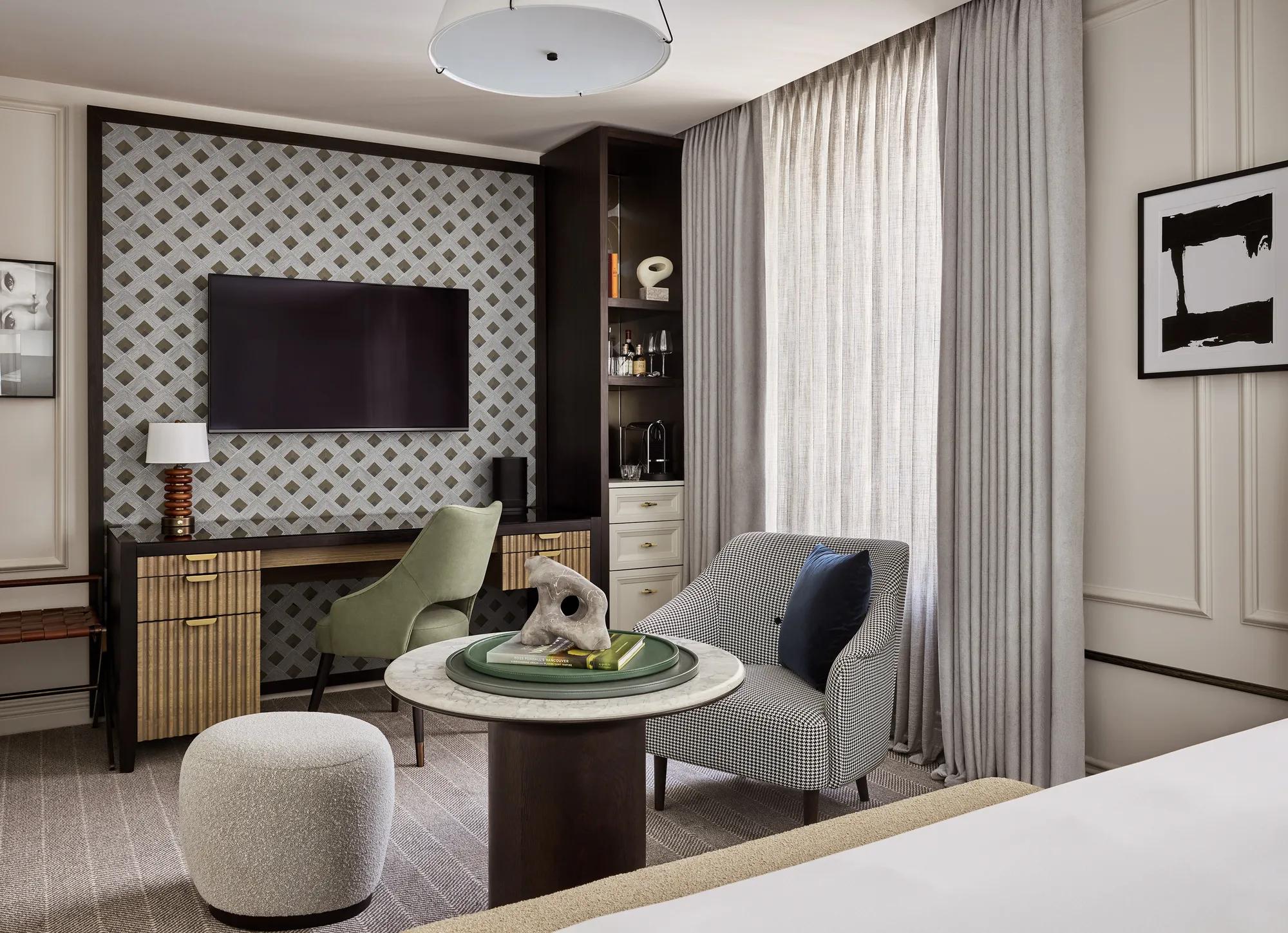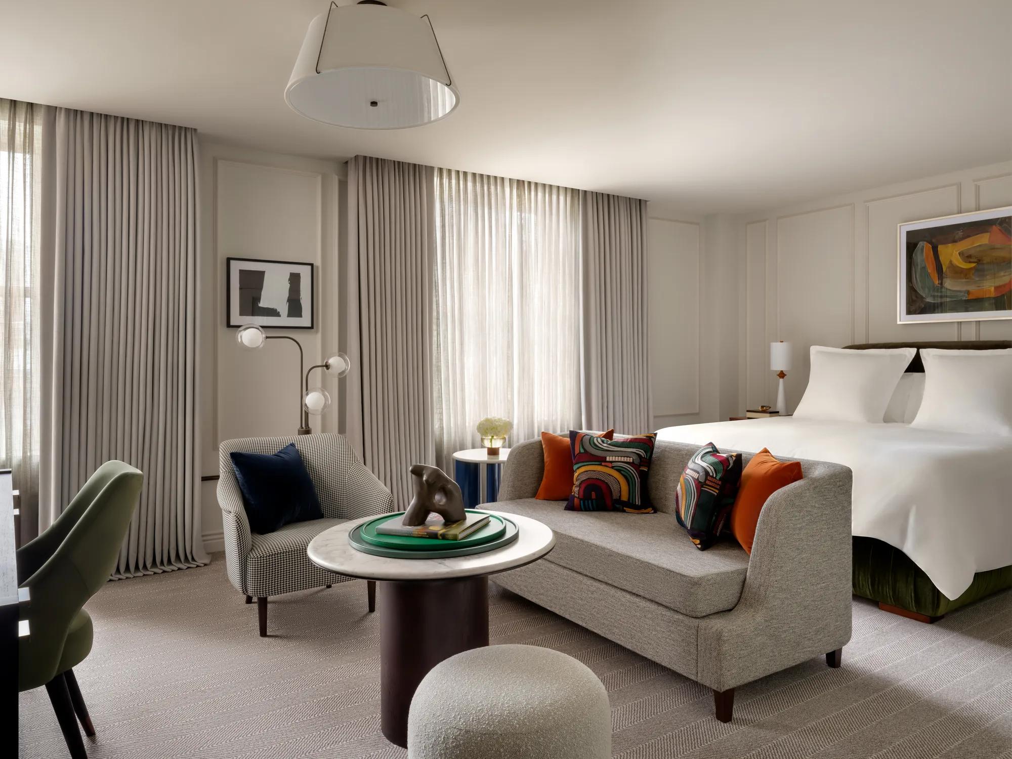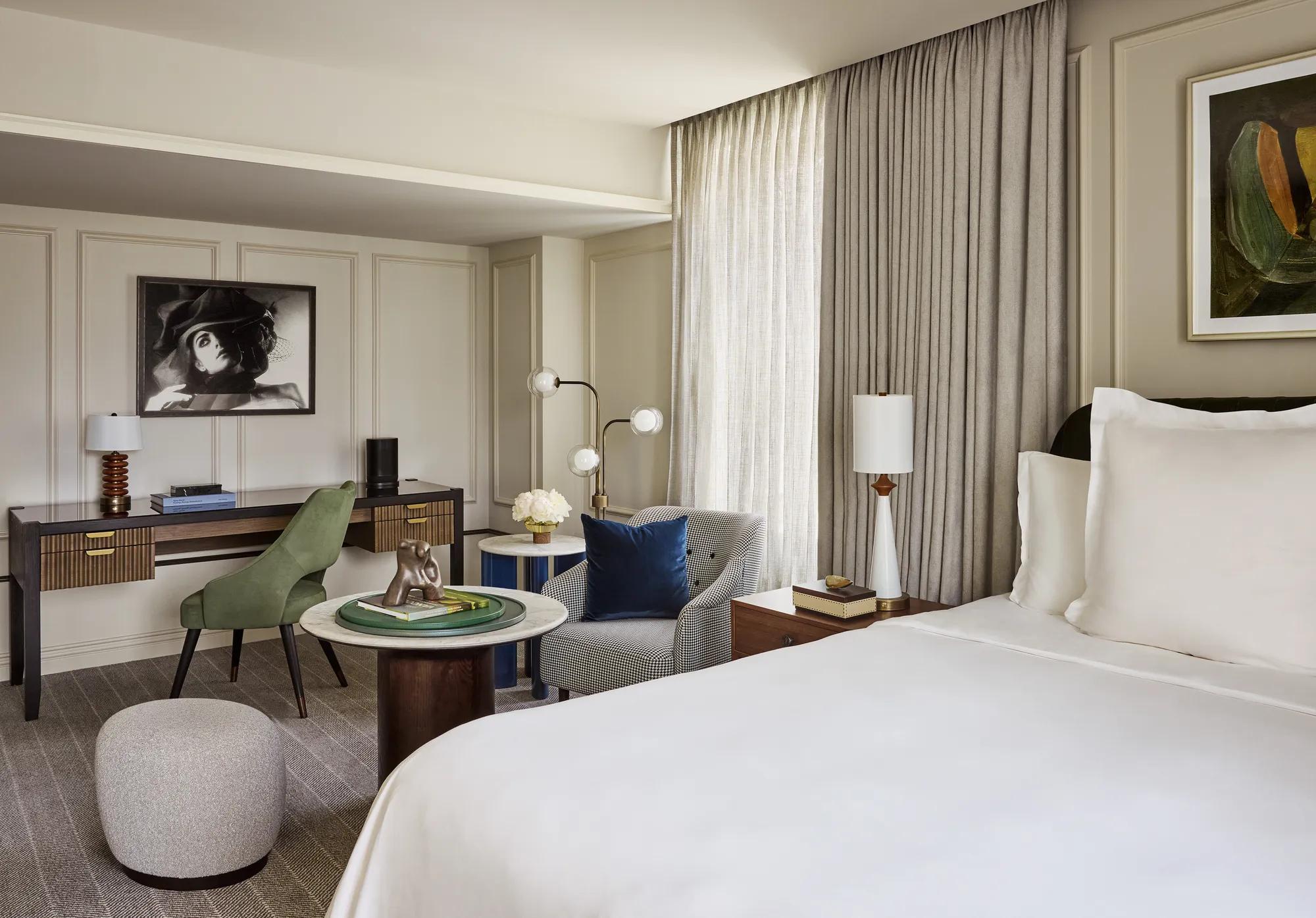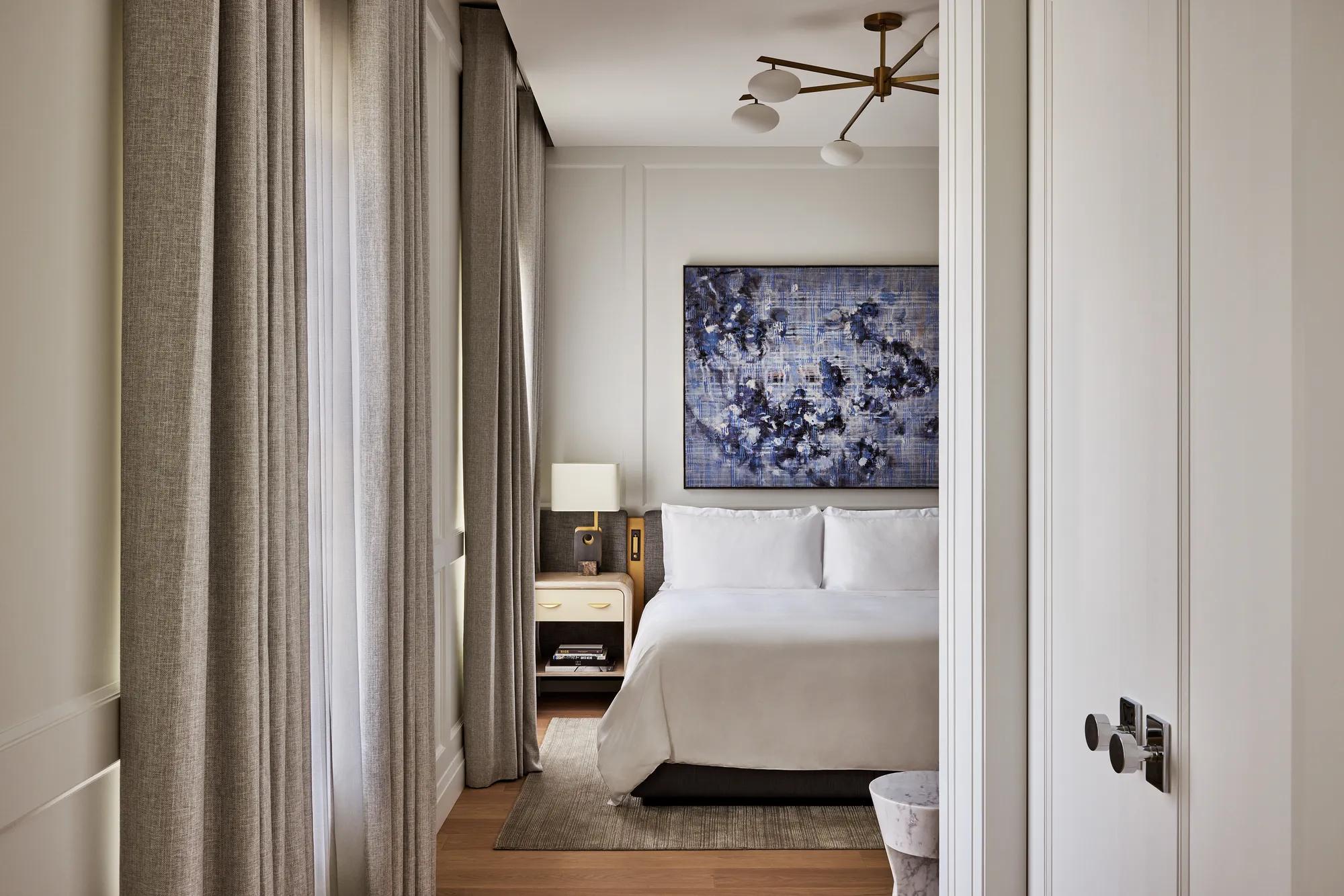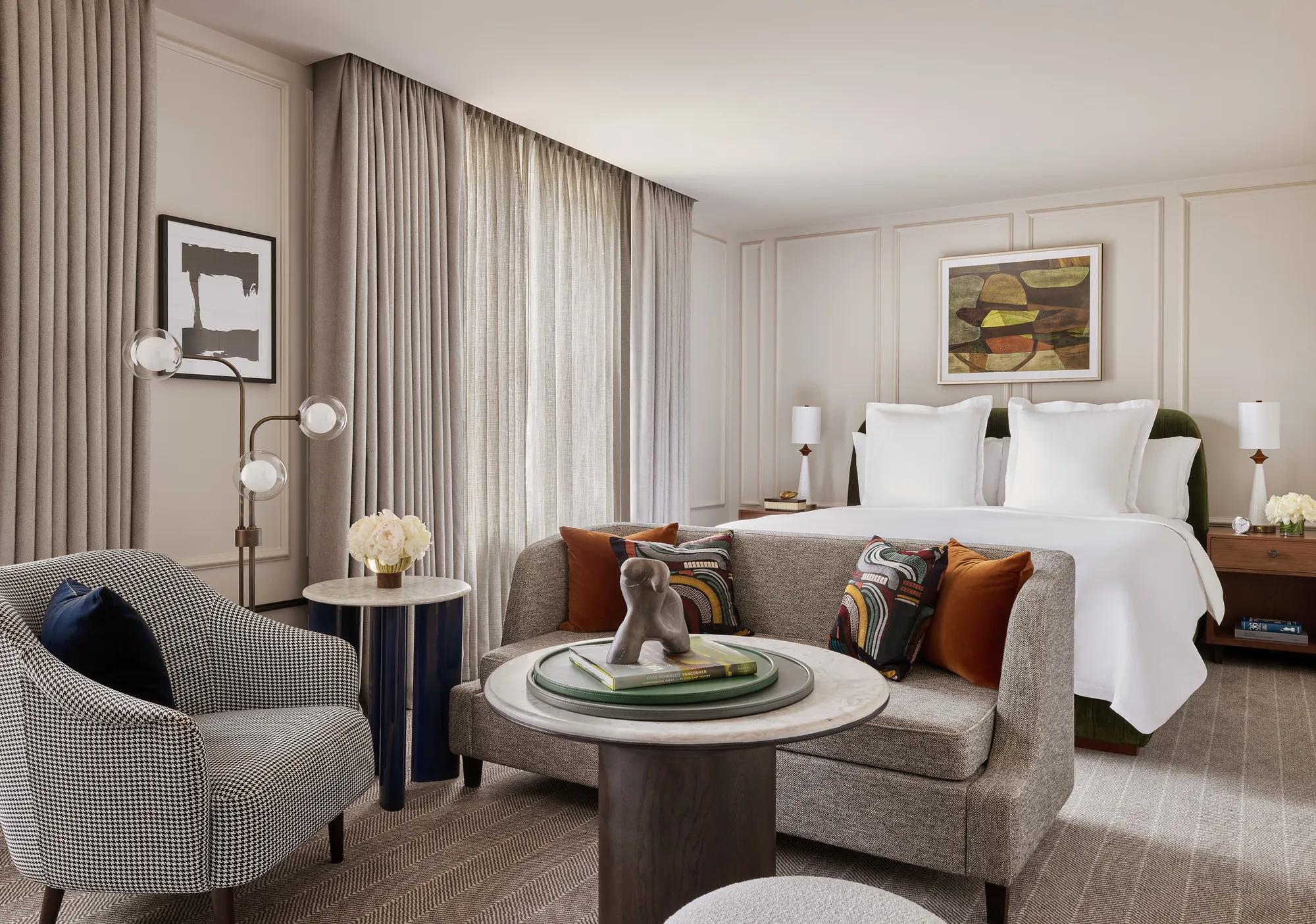 A serene retreat with a king bed, spa-inspired bath, and Downtown Vancouver views—a residential haven steeped in storied elegance