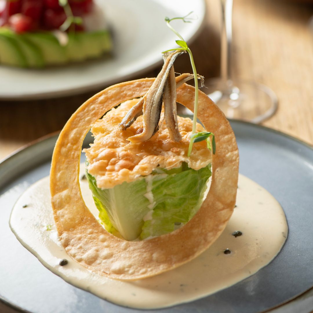 Romaine | Boquerones Anchovies | Parmesan Crisp | Capers | Mezcal Dressing | Tortilla Ring