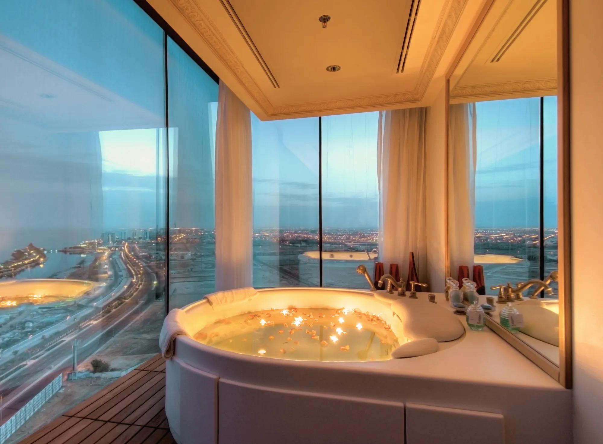 Featuring showers, room’s feature modern luxury with Arabian artisan touches.