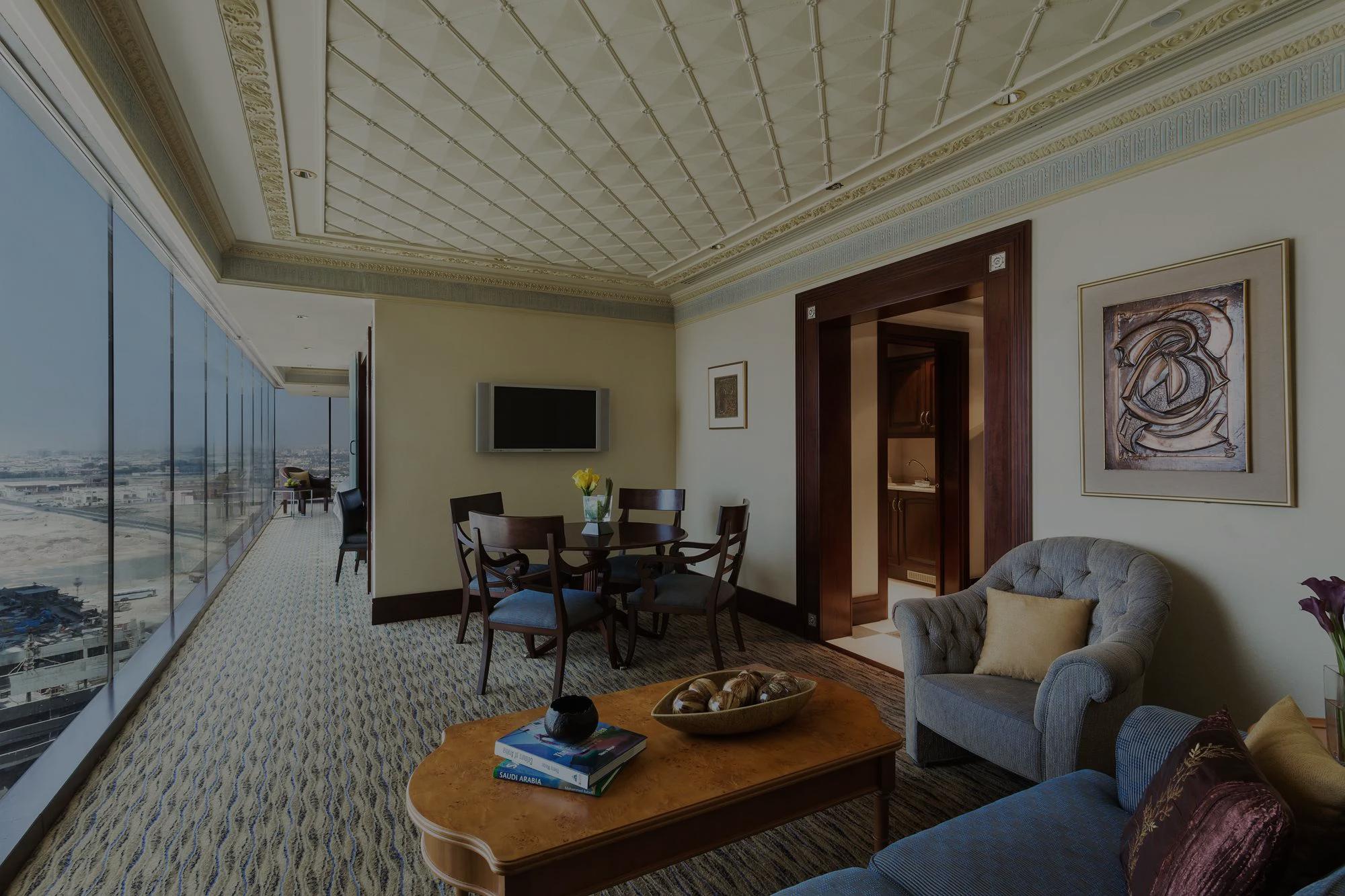 With views of the Corniche and the Red Sea, breakfast spreads and international buffets offer diverse global flavors in a regal setting.