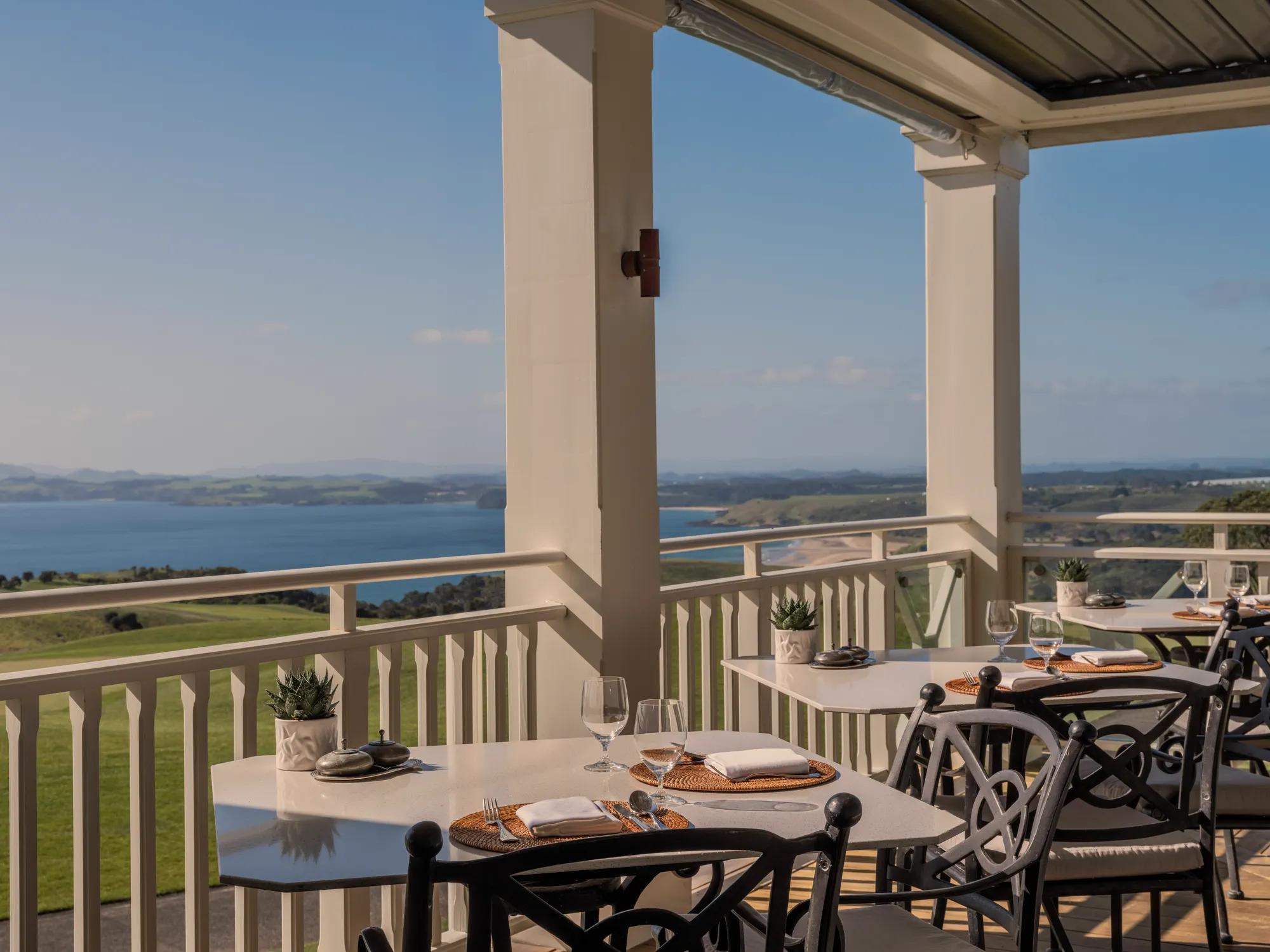 The Main Dining Room is an impressive event space designed to accommodate large groups, making it perfect for gatherings and celebrations. Bathed in natural light that enhances its refined interiors, the room features an inviting open fireplace, adding warmth and ambiance. It effortlessly transitions to an expansive outdoor dining space with its own fireplace, offering guests the option to enjoy the refreshing outdoor air and panoramic views. Direct service from the kitchen ensures efficient catering, while the combination of indoor and outdoor settings provides flexibility.