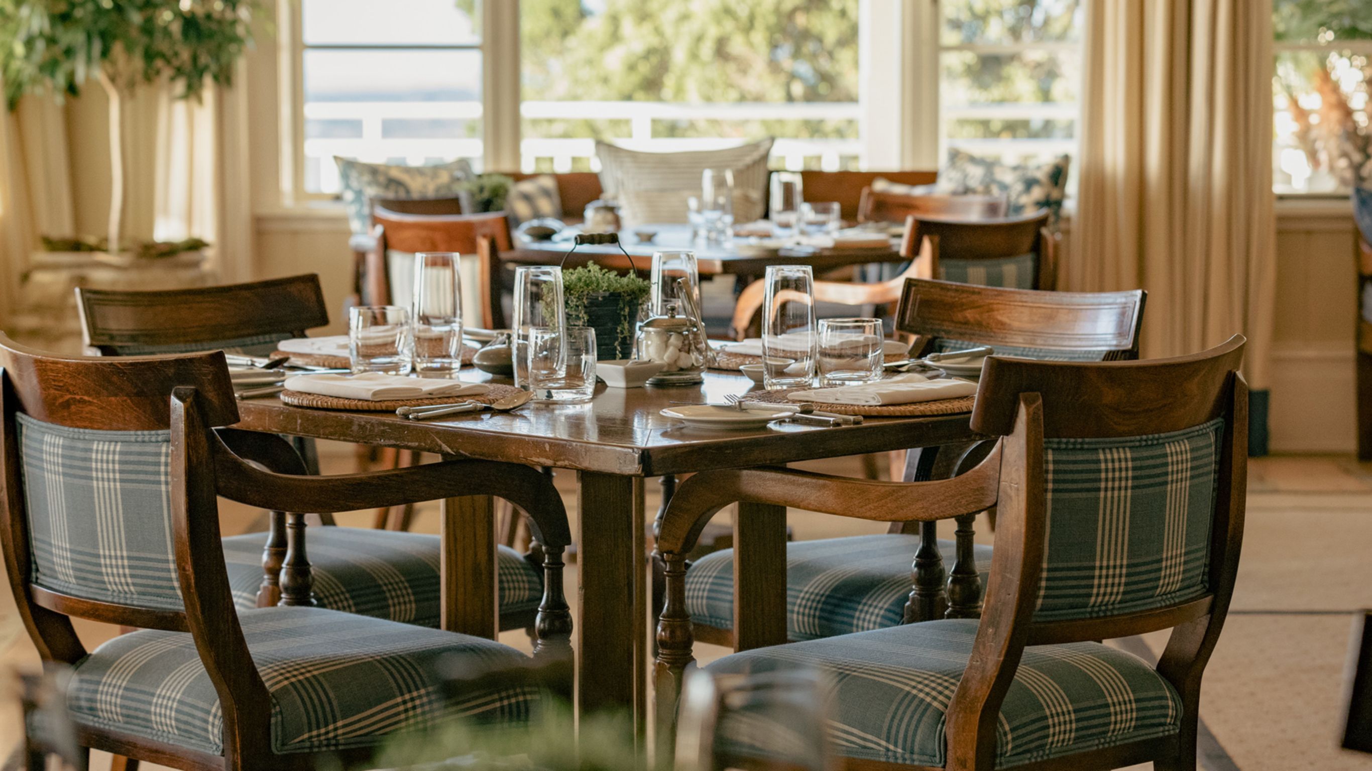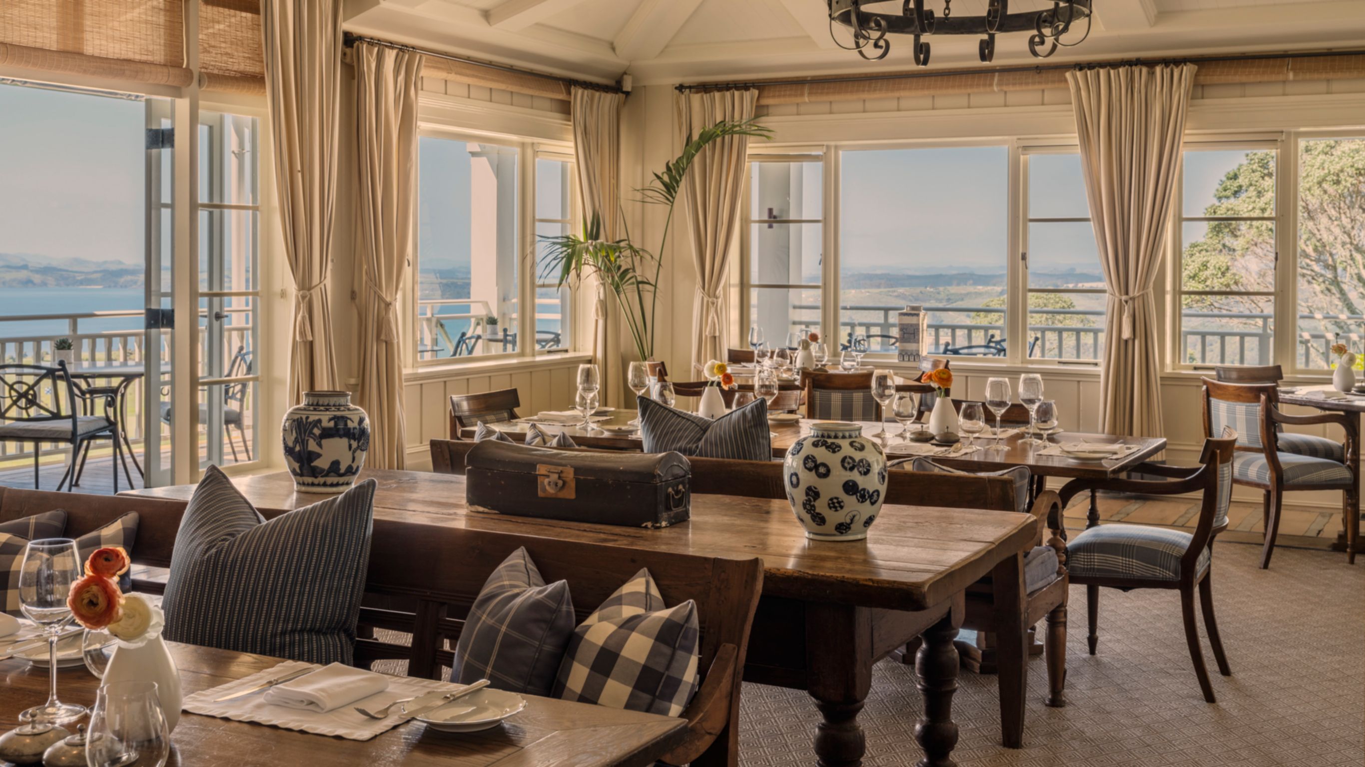 The Main Dining Room is an impressive event space designed to accommodate large groups, making it perfect for gatherings and celebrations. Bathed in natural light that enhances its refined interiors, the room features an inviting open fireplace, adding warmth and ambiance. It effortlessly transitions to an expansive outdoor dining space with its own fireplace, offering guests the option to enjoy the refreshing outdoor air and panoramic views. Direct service from the kitchen ensures efficient catering, while the combination of indoor and outdoor settings provides flexibility.