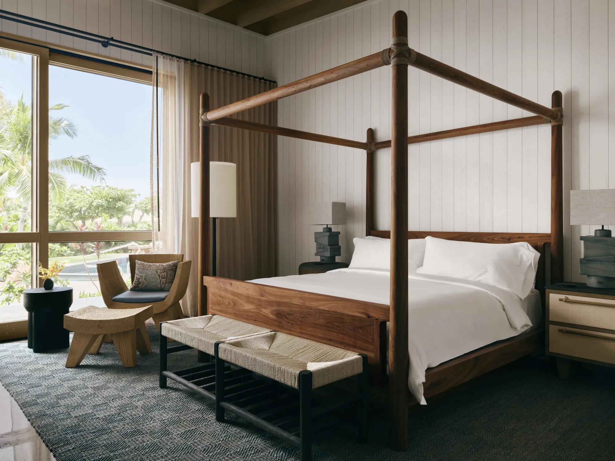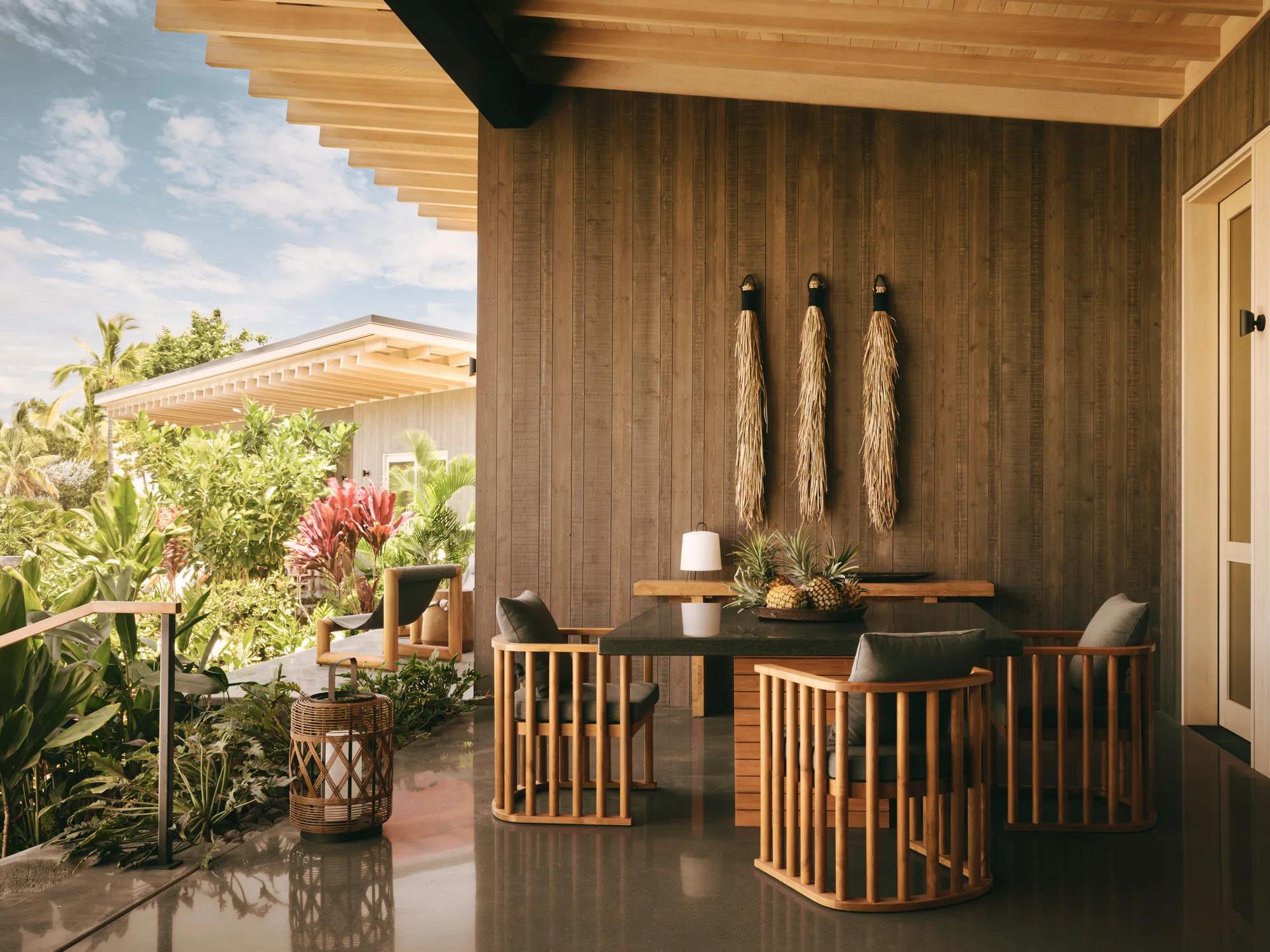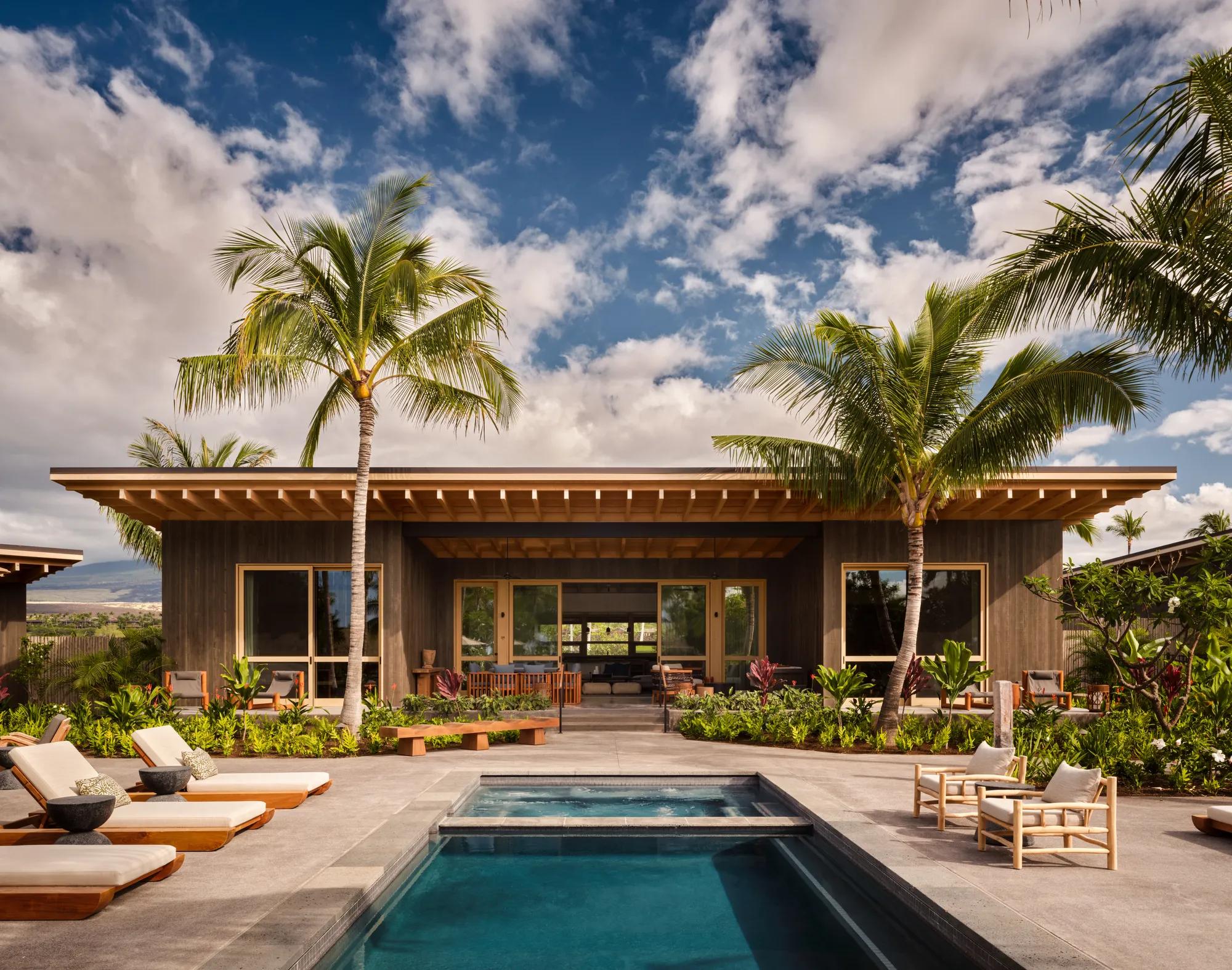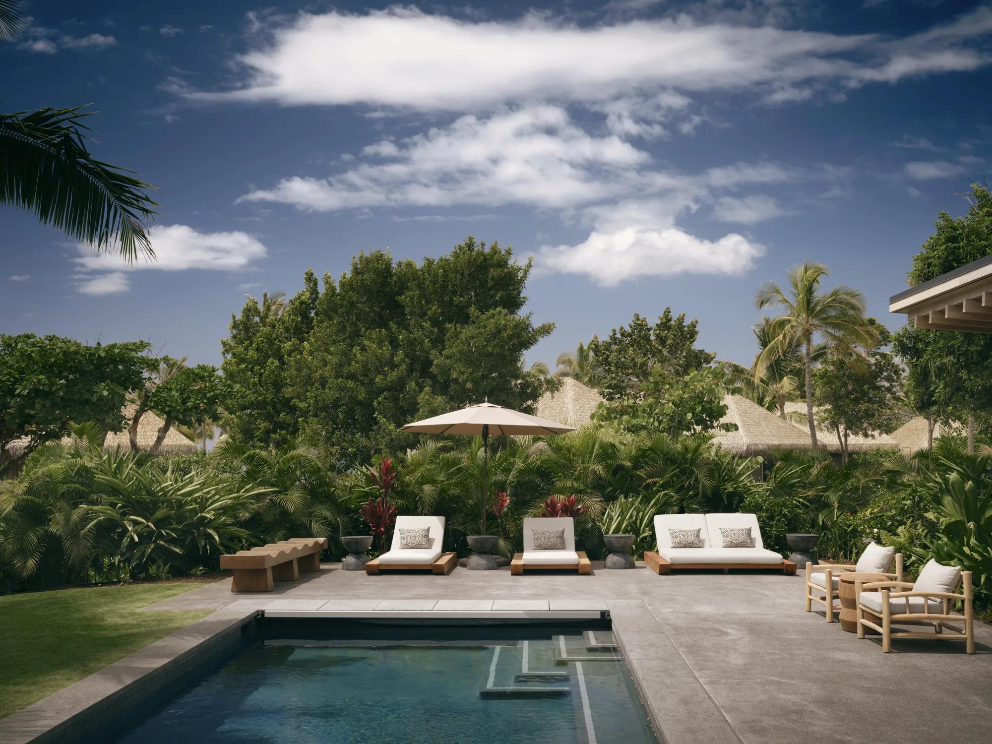 Offering a blissful balance of seclusion and comfort, the unique four-bedroom family kauhale features a private pool, hot tub, outdoor fire pit with 6,500 sq. ft. of indoor and outdoor lanai space. A harmonious blend of heritage and modern design, they feature a large entertaining space with kitchen, bespoke furniture and lighting, and luxurious elements such as an outdoor shower, large bathrooms and soaking bathtubs.