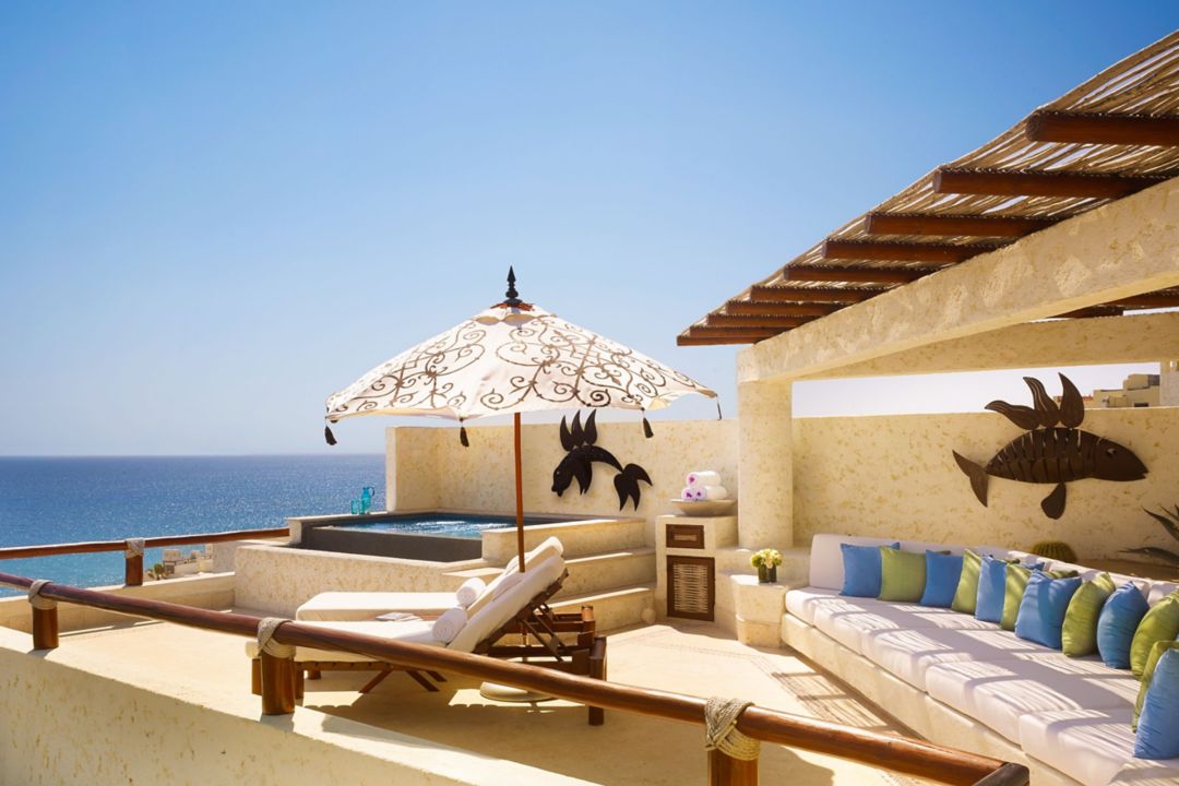 These suites offer 2,100 square feet of contemporary luxury and Mexican styling. Located on the ground level, overlooking the landscape and the ocean beyond, each suite has a living room, full kitchen and private terrace plus two bedrooms with a king bed or two queen beds. Both master bathrooms feature marble showers and Jacuzzi bathtubs.