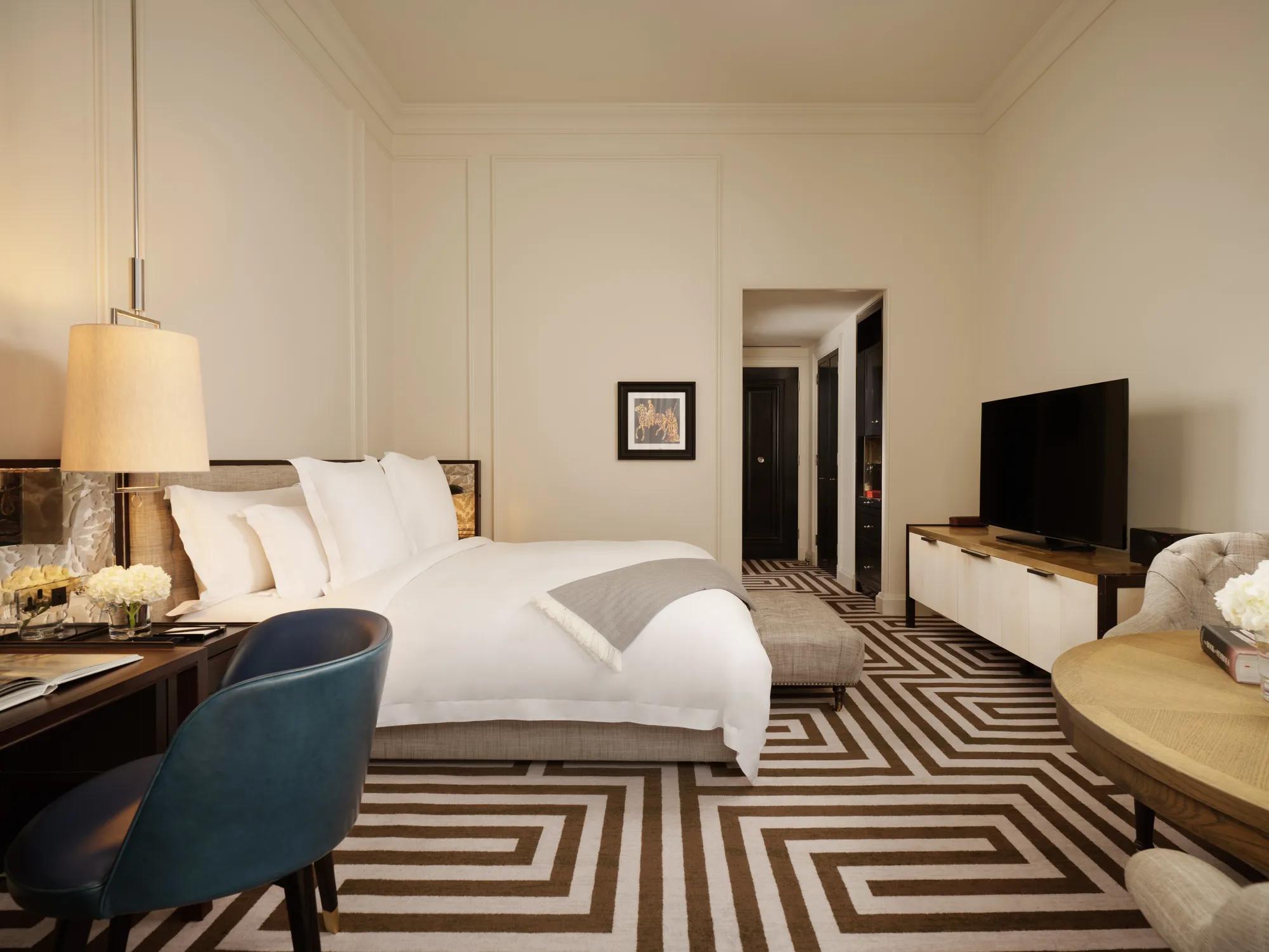 Rosewood London's Two-Bedroom Grand Premier Rooms span over 68 square metres, offering bright and eminently comfortable living spaces in which to relax and unwind. Rich textiles, refined wall panelling, contemporary art and lit vanities grace each room, creating an elevated and charming atmosphere throughout. Italian marble bathrooms with walk-in shower or deep soaking bathtub offer impeccable residential style. The perfect retreat for families with young children who appreciate the convenience of interconnecting rooms.