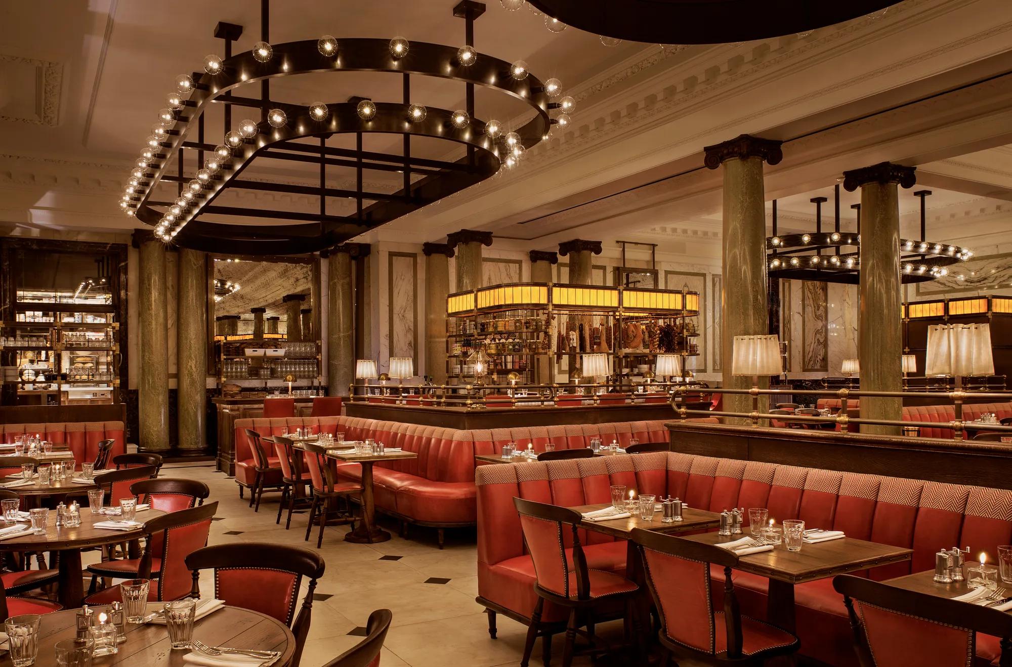 Serving traditional British dishes with a twist, this midtown London grand brasserie adjoins The Terrace and The Pie Room.