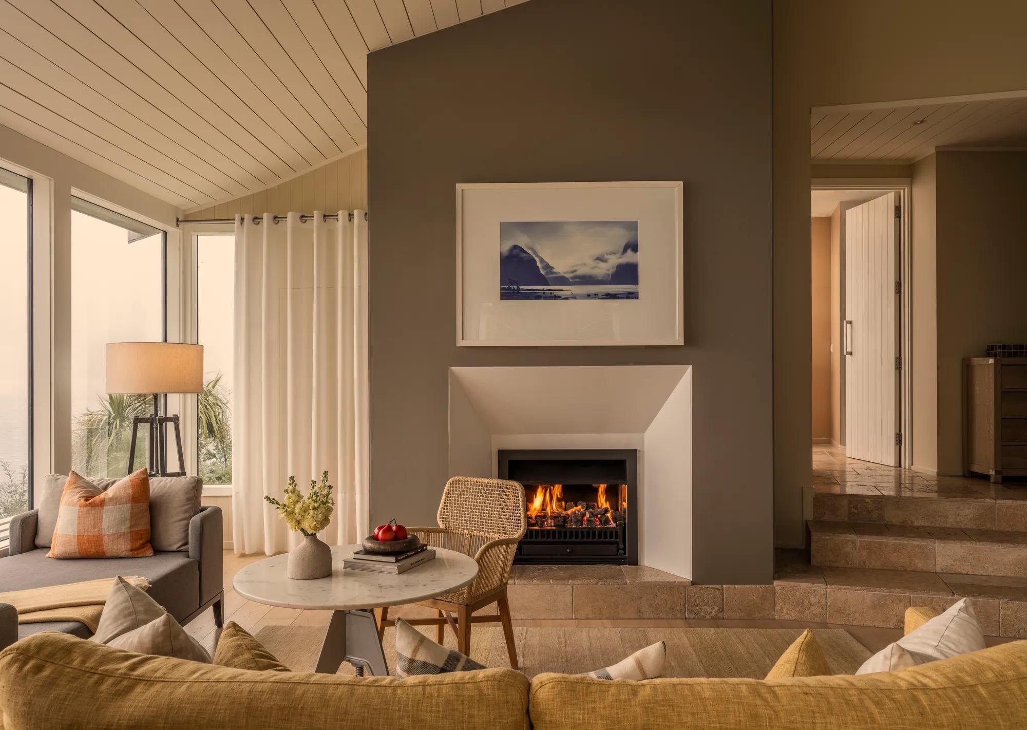 A fireside escape, elevated. Savor panoramic views of Lake Wakatipu, embraced by striking design and native gardens