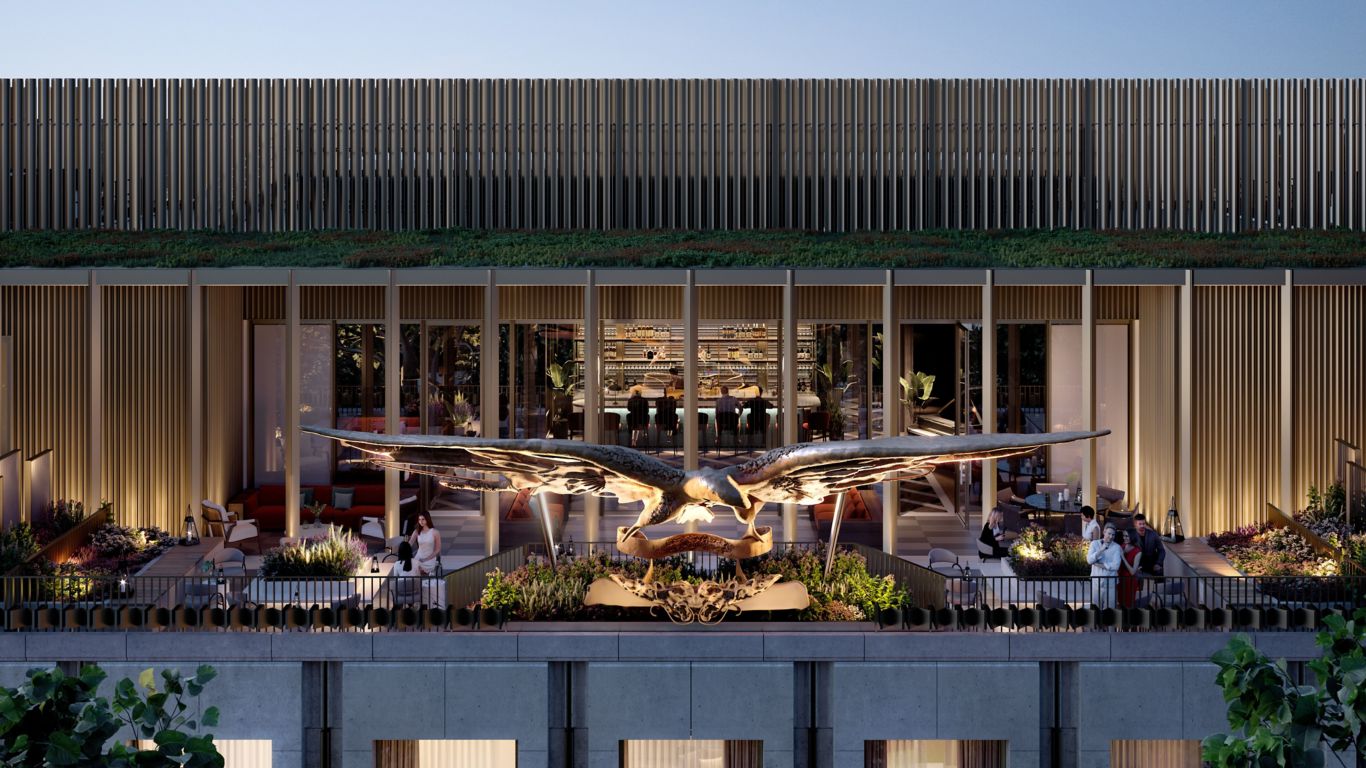 The property will be home to eight restaurants and bars, including the first European outpost of New York’s Carbone and a new Asian concept restaurant. Eagle Bar, taking its name from the newly restored 10-foot high, 30-foot wide golden Eagle that was placed on the building when it first opened in 1960, will sit proudly on the seventh floor offering a spectacular rooftop bar experience with panoramic views across London.