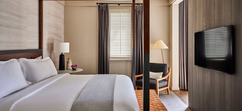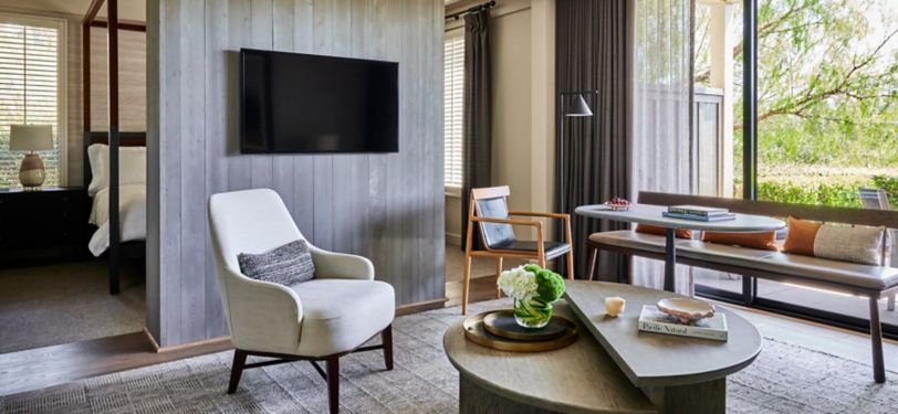 Stylish and spacious, the Rosewood Junior Suite offers 791 square feet of relaxing accommodations featuring a king bed and luxuriously appointed bathroom with a marble bathtub and separate rain shower. The suite’s furnished private terrace offers views of the flowering gardens and courtyards, swimming pool or the Santa Cruz Mountains.