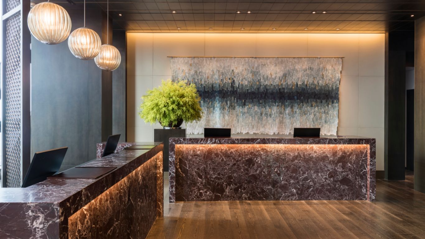 In contrast to the bustling urban exterior of the hotel, The Living Room presents the ambiance of a light-filled residential home, albeit with expansive city views from the its 35th floor outlook. A warm color palette streams easily from day to night with versatile seating for light dining, social mingling to and business tȇte-à-tȇte.