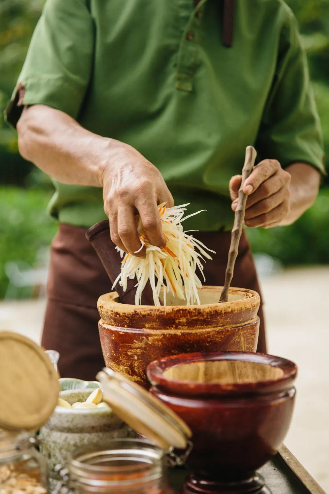 Rounding out the experience, you will prepare and enjoy your creations in Ta Khai, a rustic restaurant reminiscent of a home in a fisherman’s village, complete with Andaman Sea views. Not only will you leave with recipes of the dishes you’ve made in order to make them at home, we’ll start you on your way with a gift of Ta Khai’s homemade signature curry pastes.