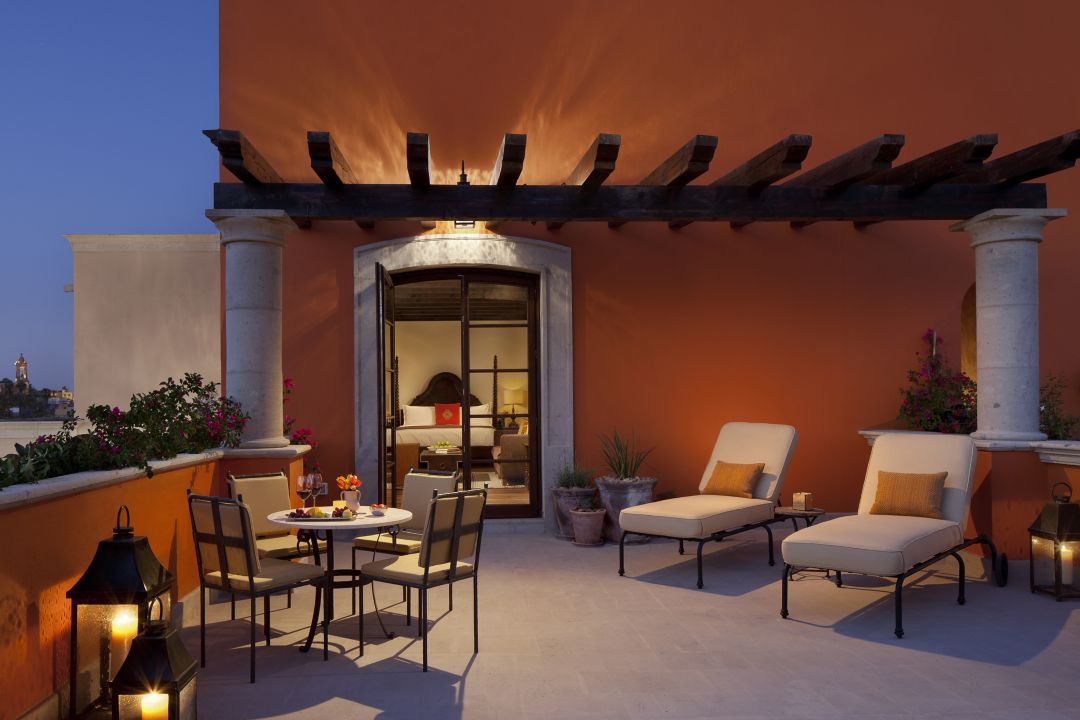 Decorated in signature San Miguel de Allende style, these handsome rooms feature wooden floors, beamed ceilings, and select rooms also include a stone hearth fireplace. Each room offers up to 640 square feet of living space and a king-size bed. French windows open onto spacious furnished balconies with charming views of either tree-lined lanes or the hotel's beautiful courtyard gardens.