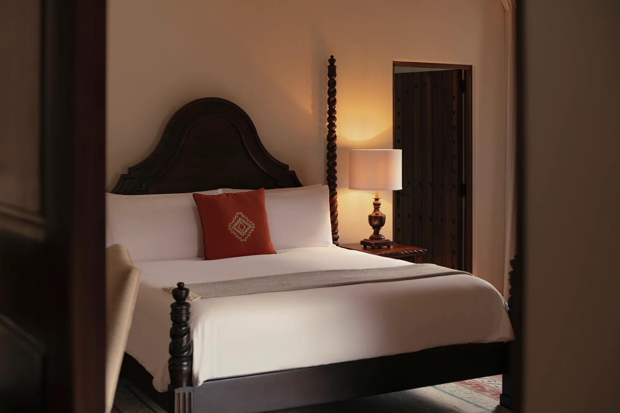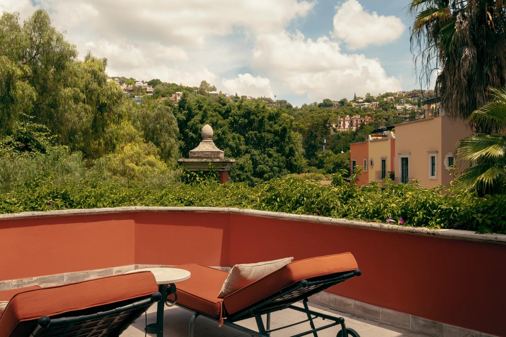 Evoking the feeling of a traditional hacienda, this master suite with a king bed offers a gracious 1,100 square feet of luxury accommodation. The lounge and dining area open onto an extensive terrace with spectacular panoramic views of San Miguel de Allende.