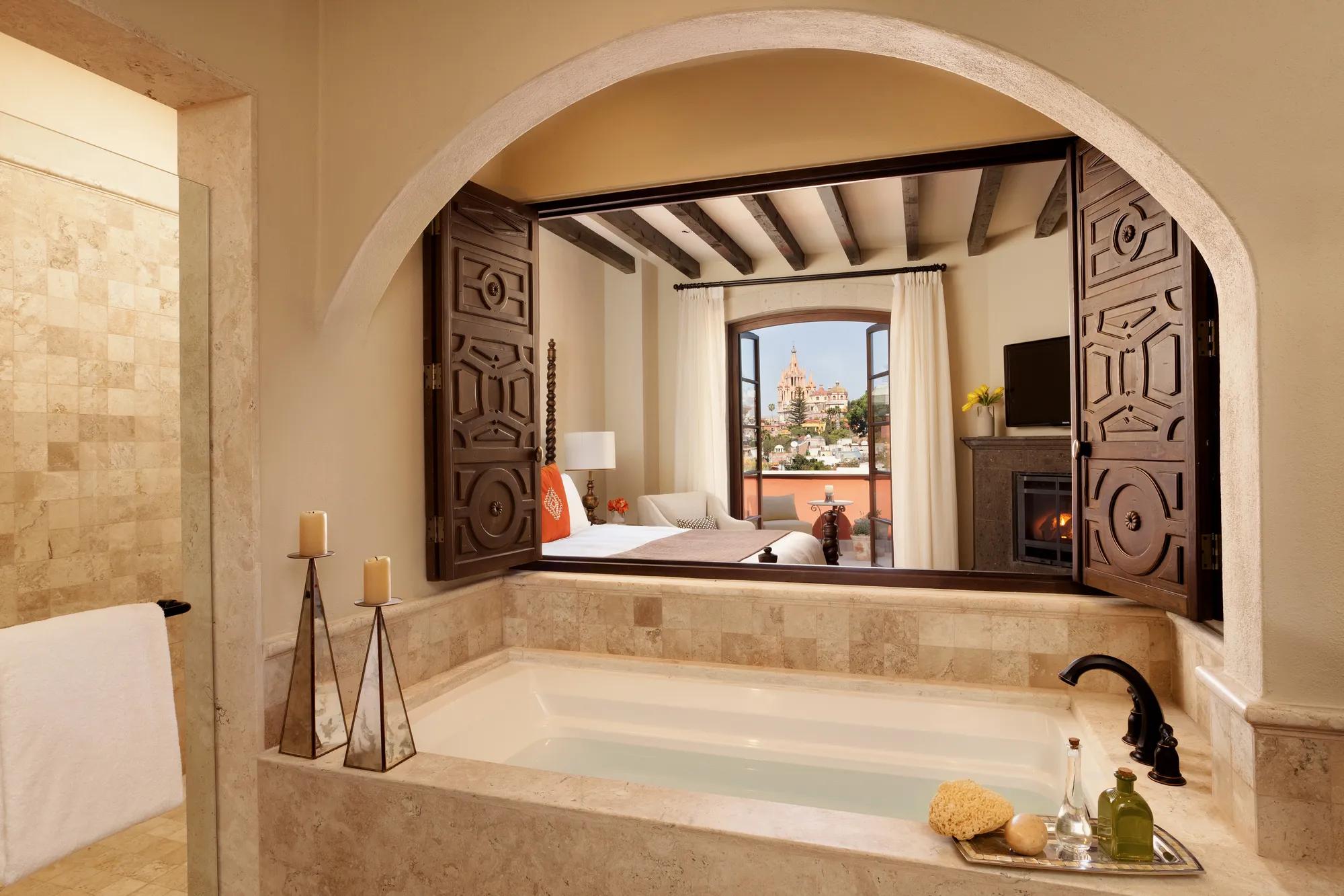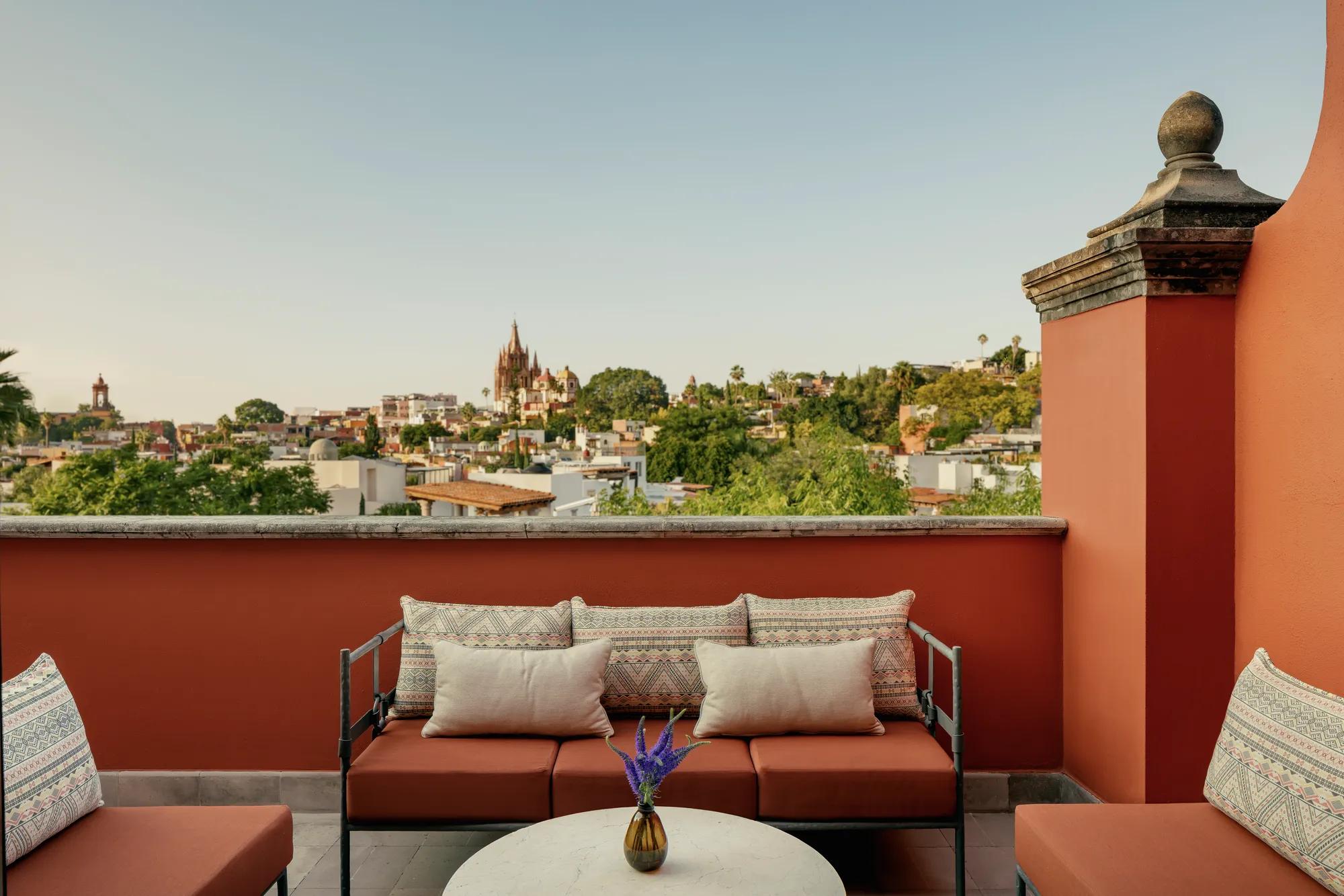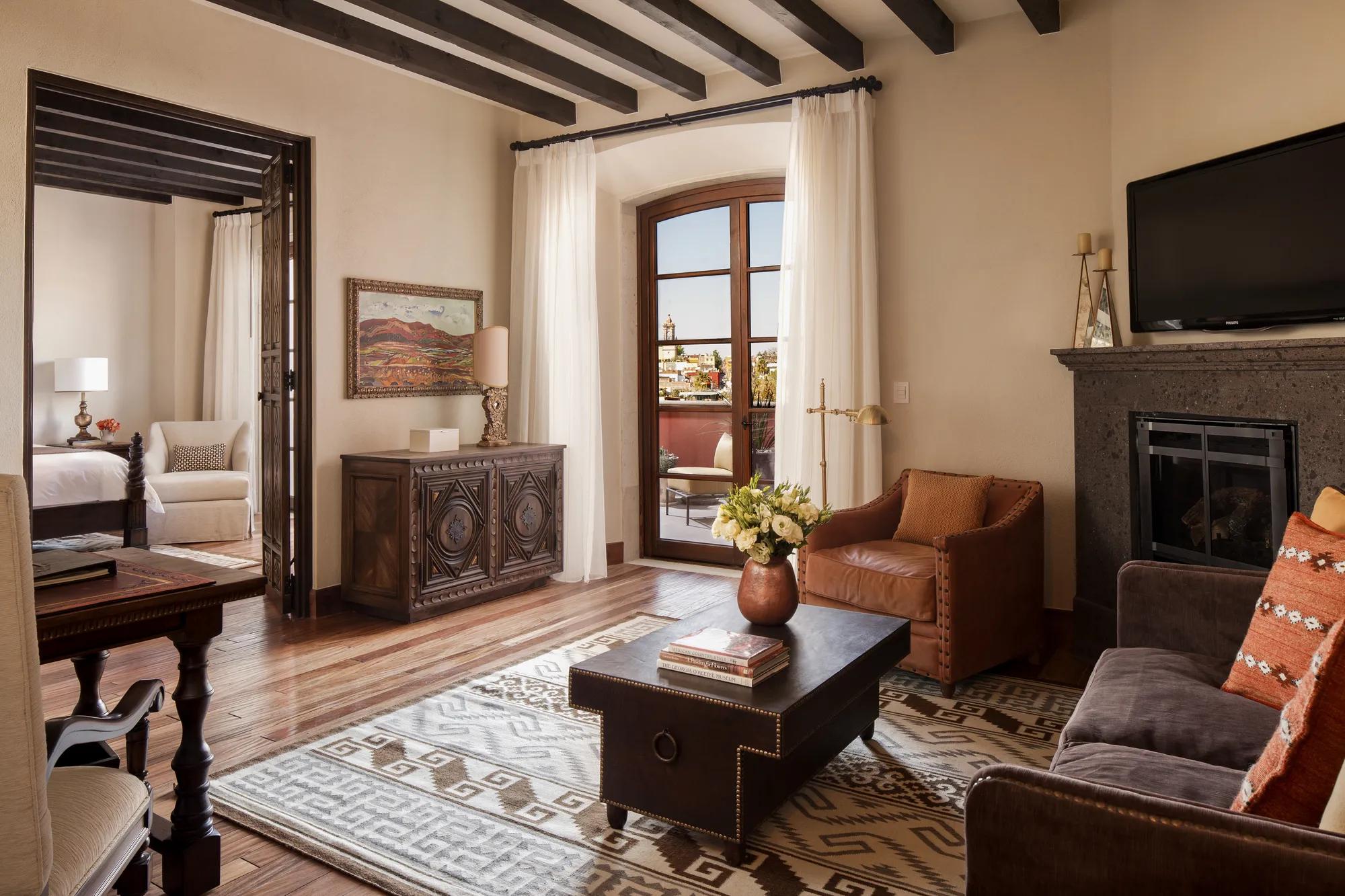 Inspired by its views of La Parroquia, the symbol of San Miguel de Allende, this lavish suite offers 720 square feet of luxurious living space. Adorned with local art and Mexican-inspired motifs, the suite features a king bed and two fireplaces. The views from the large terrace offers an irresistible backdrop for private cocktails or a romantic dinner.