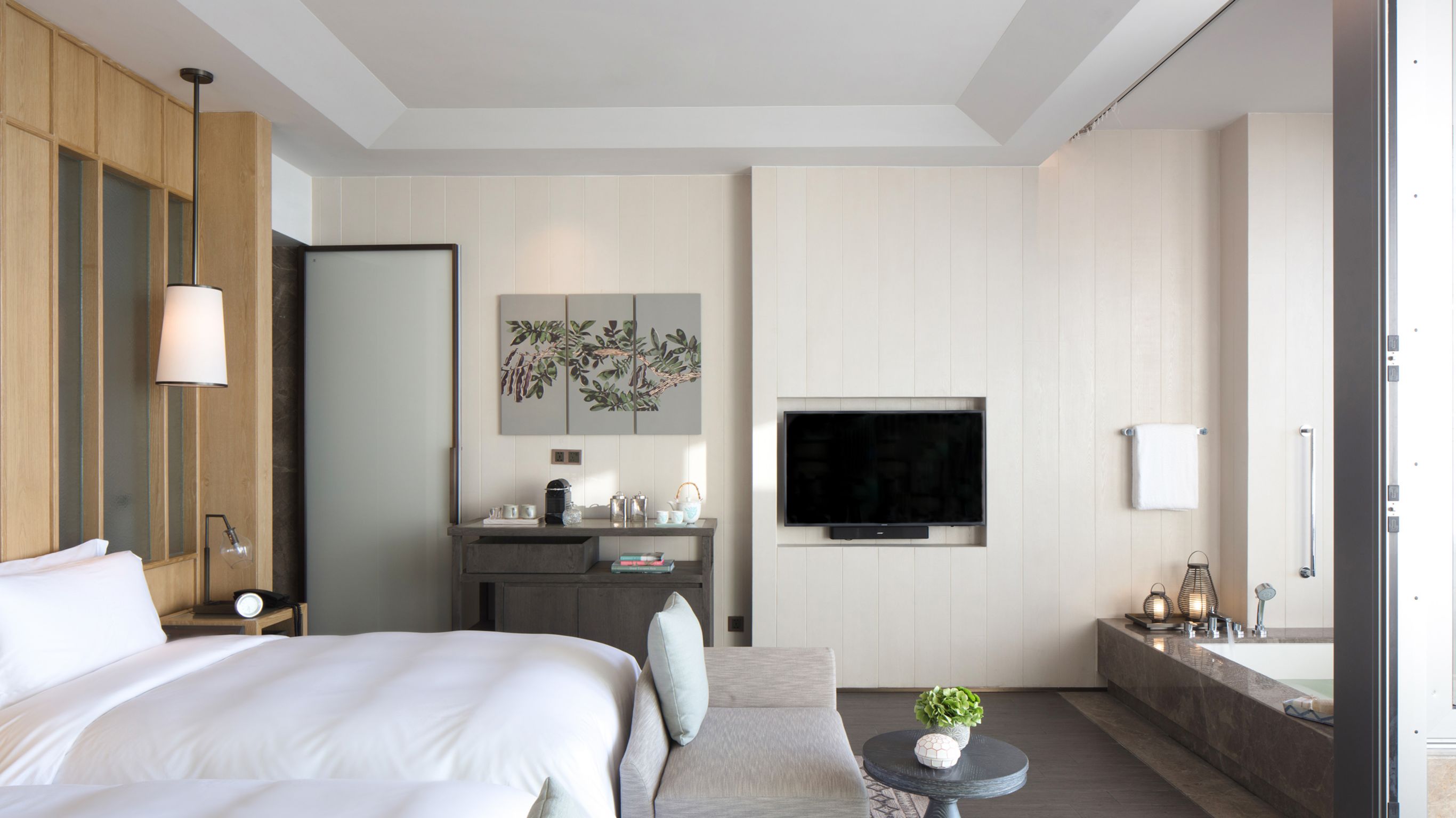 Our Ocean View Rooms offer 68 square meters of residential style living space and a magnificent view of the South China Sea, with a choice of either a king bed or two twin beds. Each guestroom is elegantly accessorized with refined works of art and accessories to convey a contemporary and homelike atmosphere.