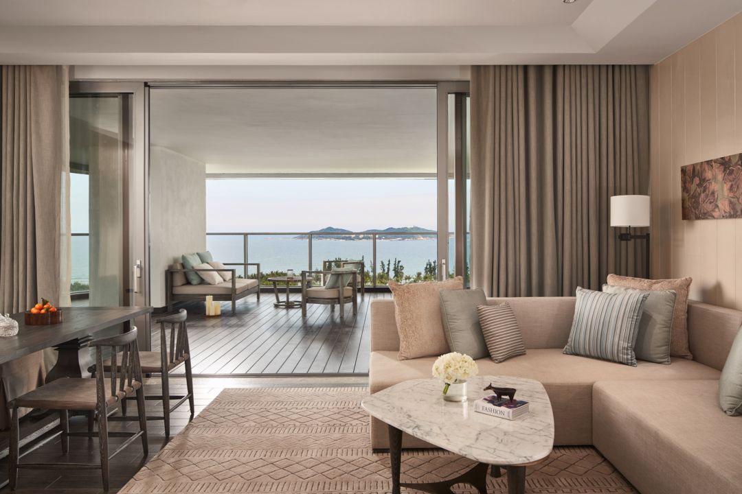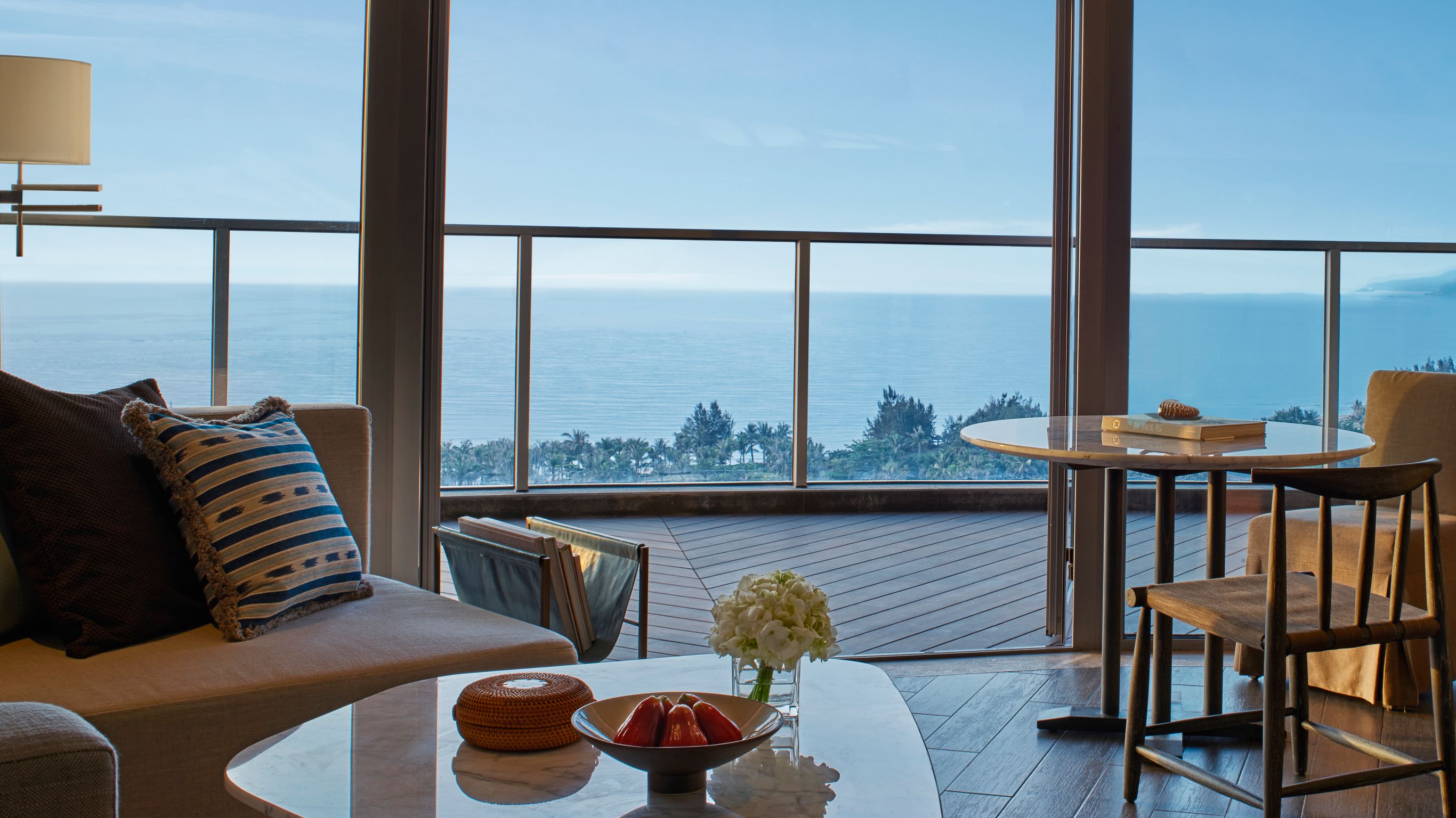 Featuring palatial residential-style living space, a walk-in closet, guest bathroom and separate living room, Ocean View Suites offer unobstructed views of the South China Sea. The suites’ oversized bathrooms feature soaking tubs as well as dual vanities for that added touch of luxury.