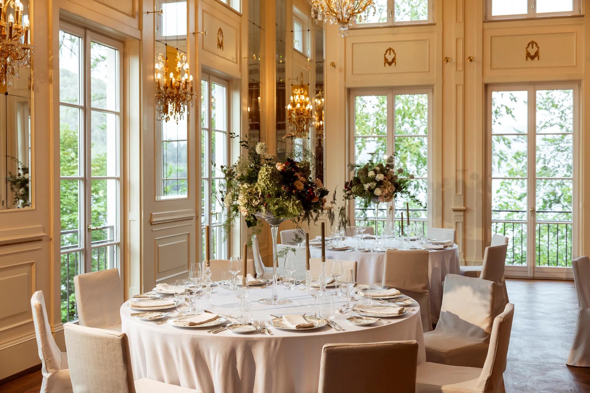 Overlooking Lake Fuschl, our historic ballroom hosts up to 100 guests in a majestic setting of chandeliers, lake views, and timeless elegance for unforgettable events.