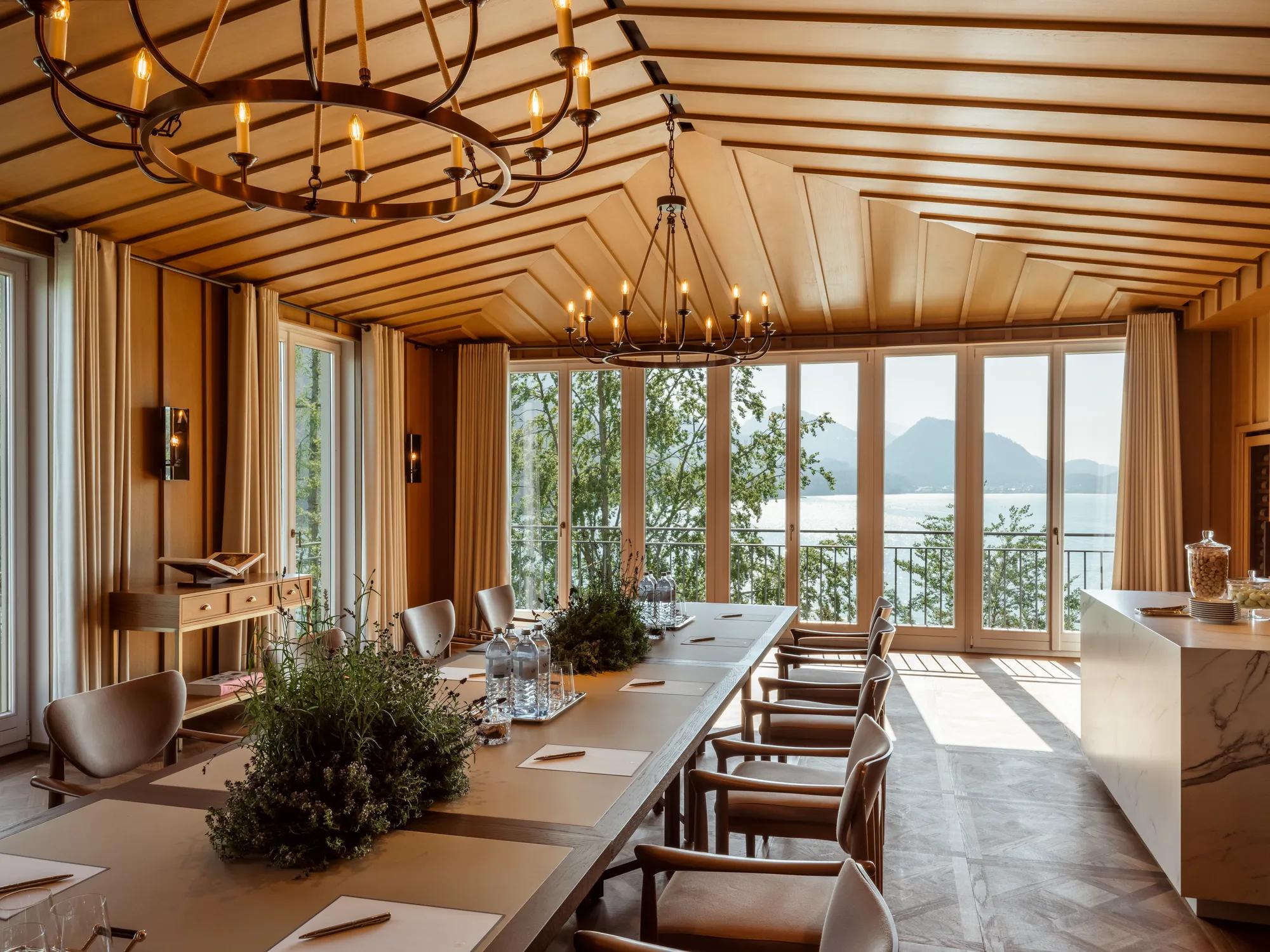 Overlooking Lake Fuschl, the Glas Salon offers natural light and a serene setting, perfect for executive meetings, strategy sessions, and intimate gatherings for up to 60 guests.