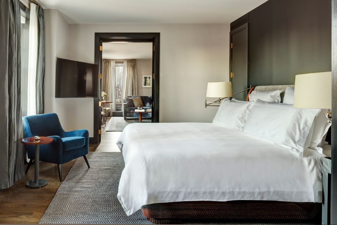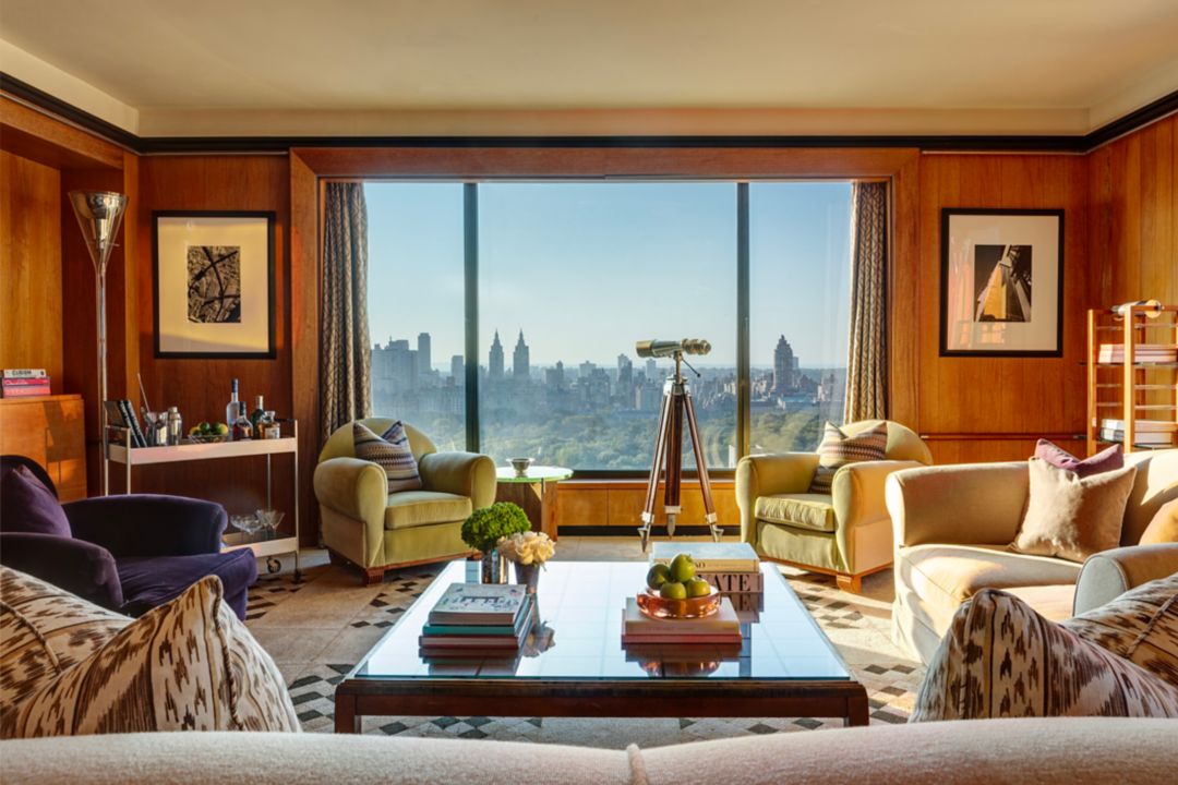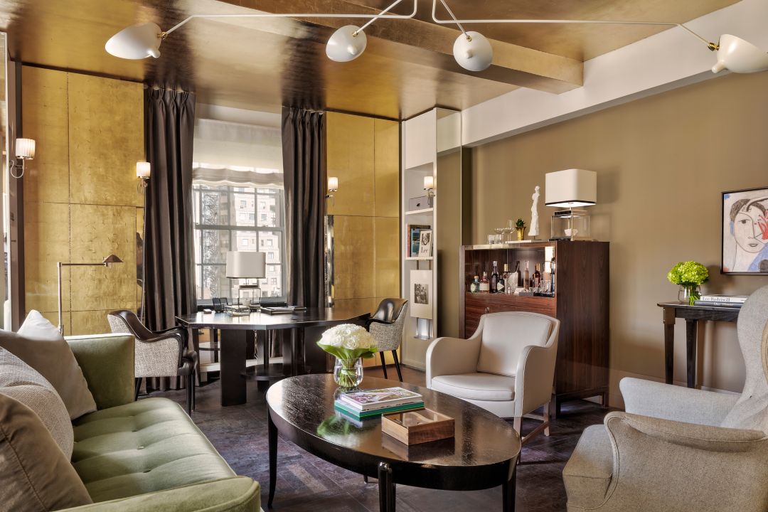 Encompassing the entire 26th floor of The Carlyle’s tower, this one-of-a-kind Presidential Suite offers the ultimate Manhattan living experience. Guests can enjoy 360-degree views of the city, featuring floor-to-ceiling windows that showcase sweeping vistas of Central Park, Midtown and beyond. The private elevator landing and dramatic entrance feature gold leaf and hand-etched Art Deco-inspired murals. This exclusive residential-style suite is adorned with Venetian plaster walls throughout and features three bedrooms, four full bathrooms and one-half bath, living room, full kitchen and media area. Additionally, the gallery entrance just off the landing features a piano, making it the ideal spot for entertaining and taking in the striking view.