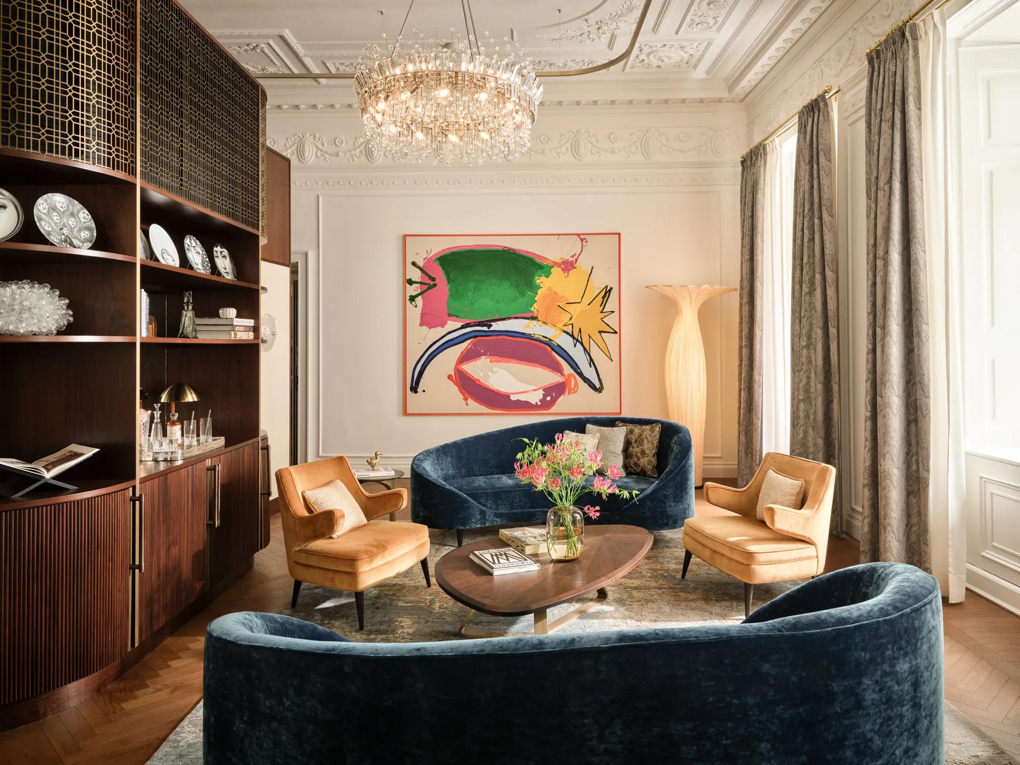 One of the largest suites at Rosewood Vienna, with 175-square-meters (1,885-sq-feet) of gracious living space, Royal Graben House is an artful marriage of heritage details and modern design. Occupying a corner of the historic building, it offers an expansive living room; separate sitting, working, and dining areas as well as a fully equipped kitchen. The large bedroom offers commanding views over the Graben pedestrian plaza and its stately buildings. Magnificent original 19th century stucco ceilings, works by local artists, modish parquet floors, and carefully curated furnishings combine to create a welcoming bastion of Viennese style.