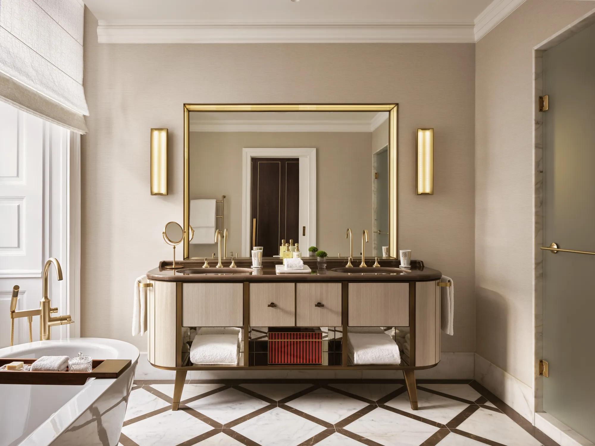 Situated on the corner of the historic Rosewood Vienna building, the Executive Junior Suite benefits from lavish proportions and beautiful views over one of the most famous of Vienna’s squares - Graben. Generously sized areas for seating and entertainment are ideal for business travelers, families, or anyone seeking residential-style accommodations in Vienna. Bespoke furniture, lighting fixtures, and fabrics enhance the distinctiveness of these luxurious suites.