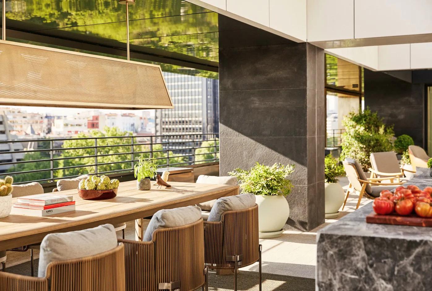The exceptional and unique two-bedroom Royal Anglada House is situated on the hotel's rooftop and offers dazzling city views from a private terrace. The suite offers a king-bedded master bedroom, second bedroom, separate lounge and dining room, and an office. Royal Anglada House can be combined with adjacent rooms to form a large penthouse. Each stay in Royal Anglada House also includes Butler service. House guests can enjoy the BMW XM plug-in hybrid model and the 100% electric BMW CE 04 Scooter to discover the wonders of Madrid (subject to availability and prior reservation) as well as VIP access to enjoy football matches at the Santiago Bernabeu Stadium - VIP tickets and transfers are included for our House’s guests.