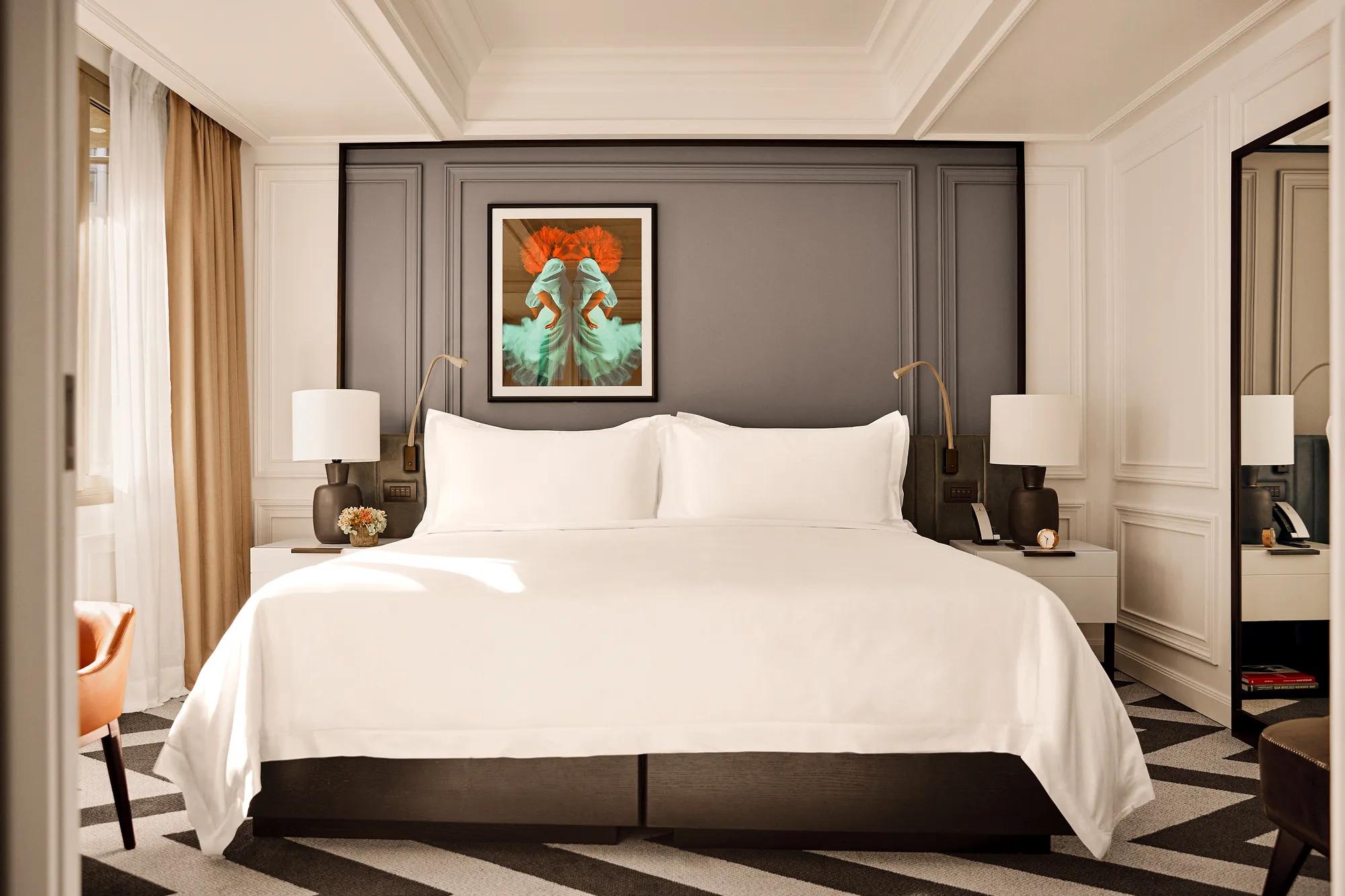 Overlooking the vibrant city, the versatile One Bedroom Suite offers a separate lounge, spacious walk-in wardrobe and large marble bathroom with double vanity, soaking bathtub and separate rain shower.
