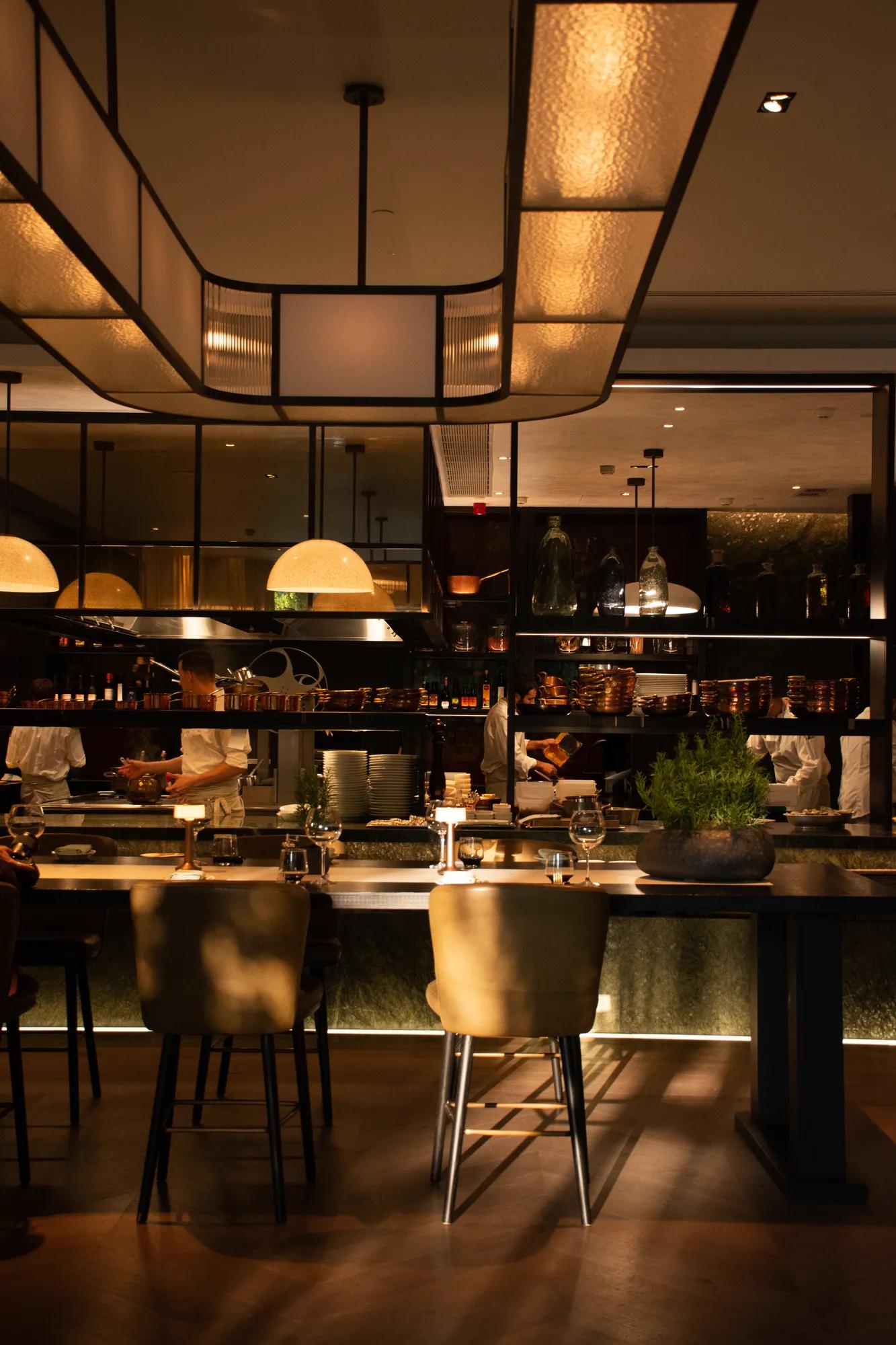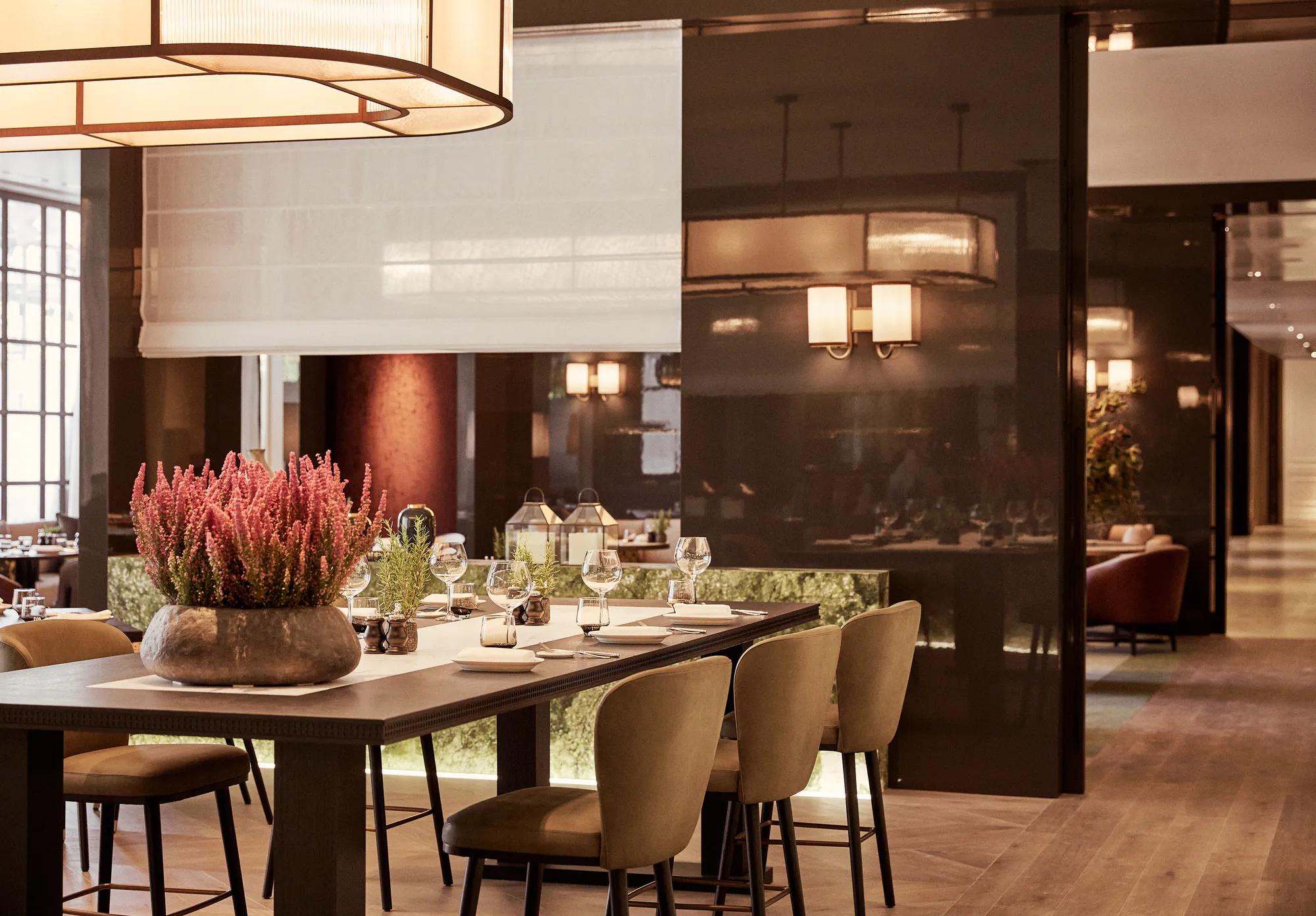 Authentic Spanish cuisine in a refined Madrid setting. This vibrant grill features an open kitchen, soaring windows, and a stunning terrace with views of tranquil, garden-filled surroundings.