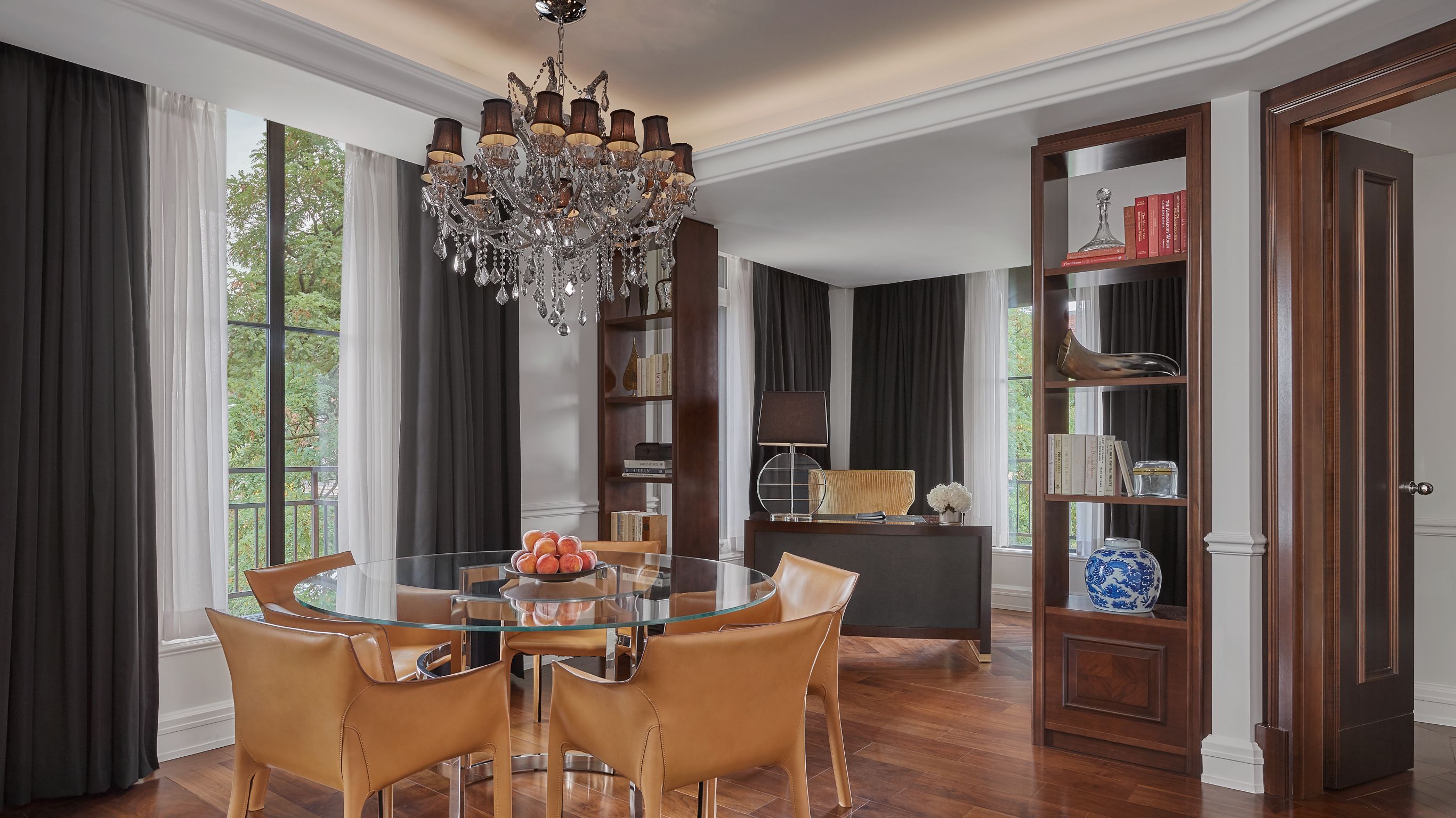 Rosewood Washington, D.C. offers an exceptionally spacious and refined four-bedroom Royal Suite. A stately foyer leads to a beautifully appointed, light-infused living room with luxurious sofas, gas fireplaces and two stylish dining areas with seating for five guests each.
