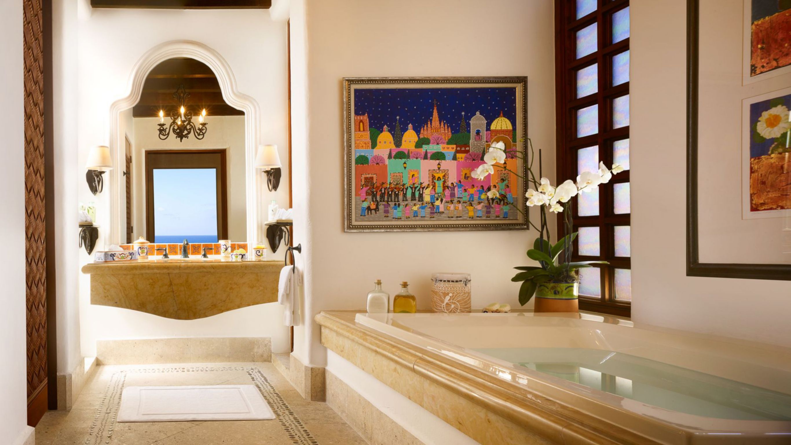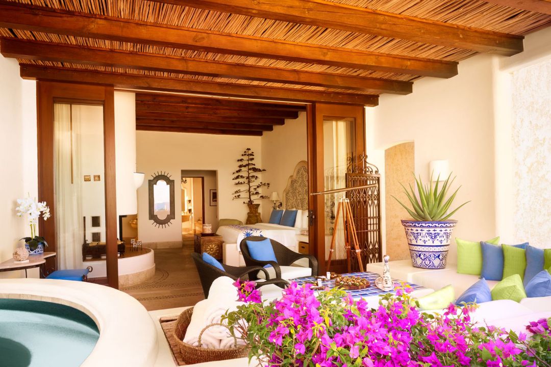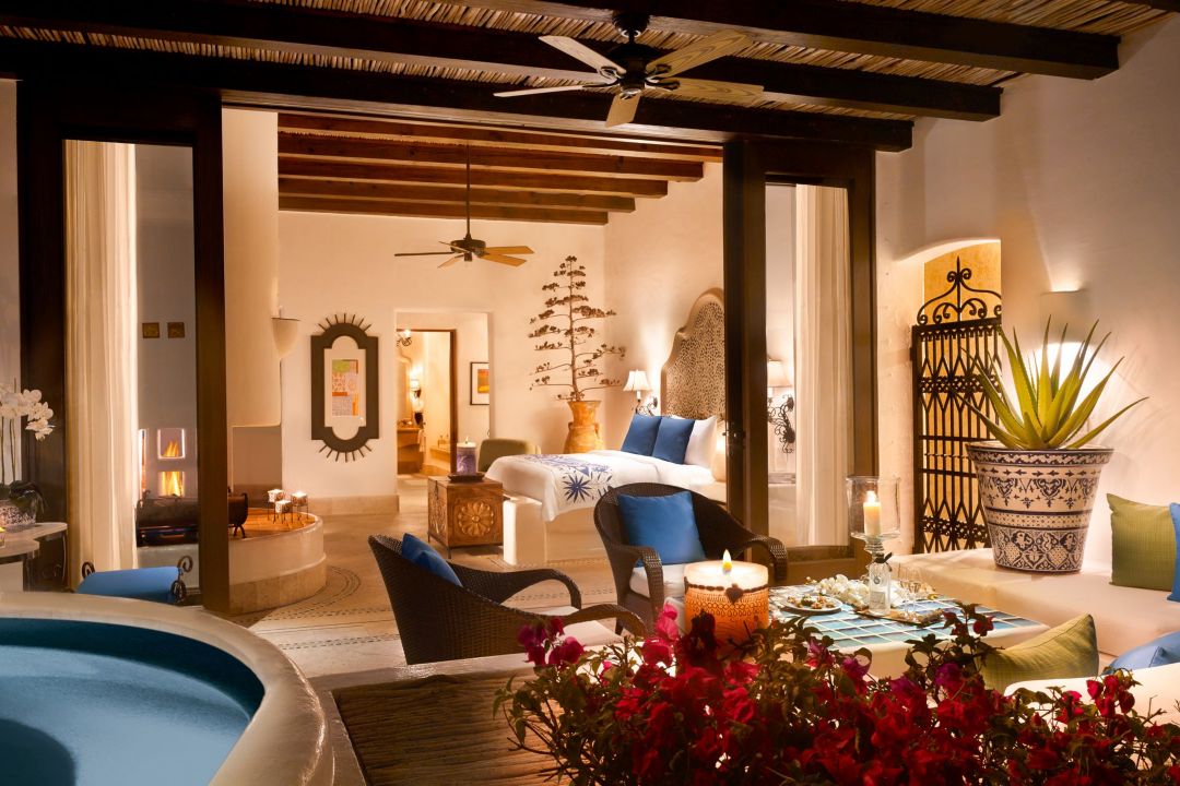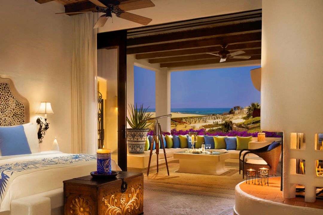Cada Junior Suite con vista al mar goza de vistas impresionantes al mar de Cortés. La suite, lujosamente amueblada, ofrece 89 metros cuadrados de espacio techado con la opción de una cama king size o dos camas queen size. Cada suite cuenta con 28 metros cuadrados de espacio privado al aire libre y está equipado con un telescopio para observar ballenas o mirar el cielo nocturno.