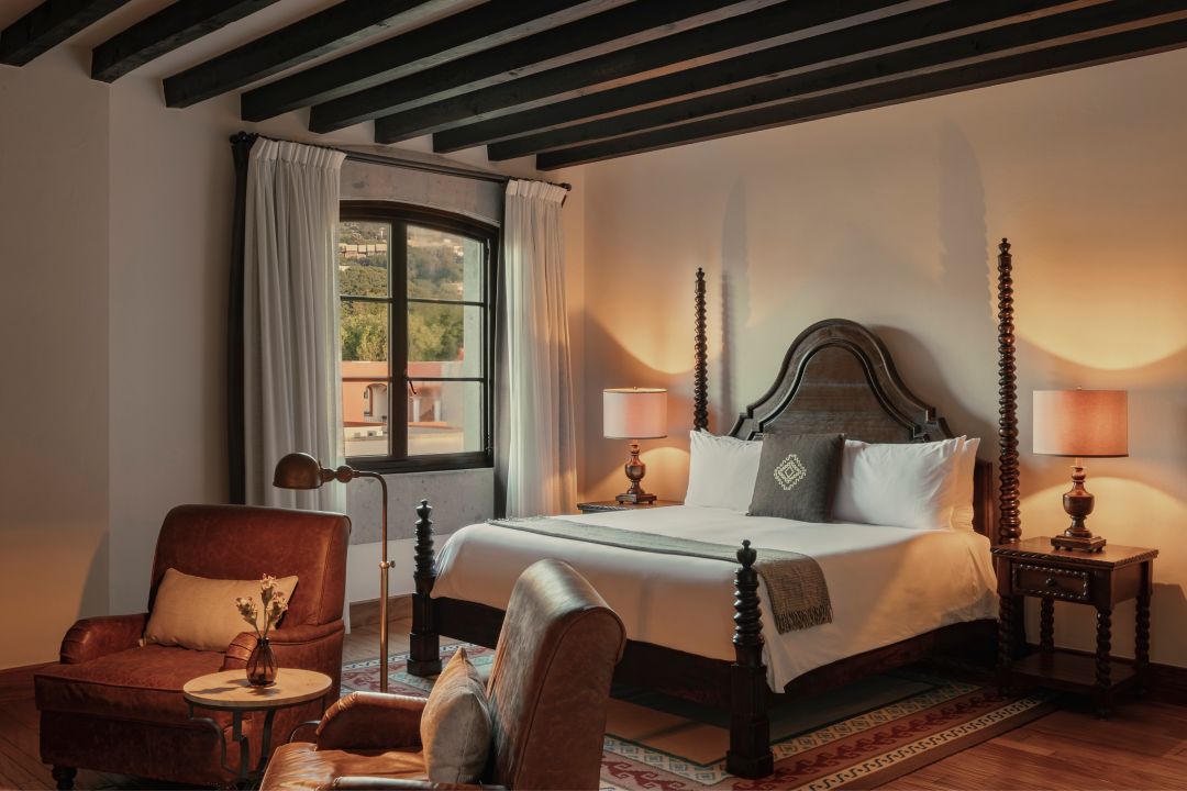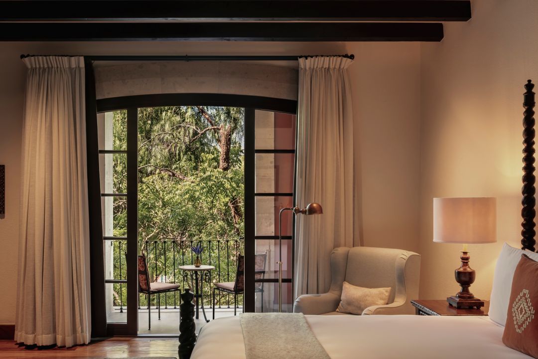 Decoradas con el estilo distintivo de San Miguel, que fusiona los diseños españoles y mexicanos del siglo XVI, estas hermosas habitaciones cuentan con pisos de madera, techos con vigas y, la mayoría cuenta con chimenea de cantera. Todas las habitaciones son de hasta 59 metros cuadrados y cuentan con una cama tamaño king. Los ventanales de tipo francés se abren a espaciosos balcones amueblados, con encantadoras vistas de calles arboladas o los hermosos jardines del hotel.