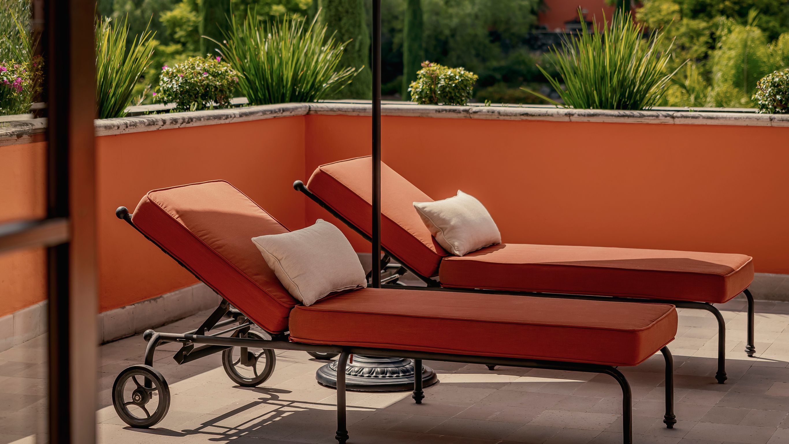 Estas cómodas suites cuentan con amplias terrazas, con vistas a los jardines del hotel, amuebladas con elegantes camastros para disfrutar del fantástico clima de la ciudad.