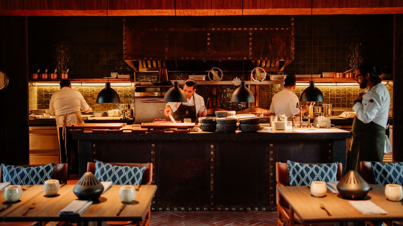 Rodeado de exuberante vegetación y con un majestuoso árbol de pirul como protagonista, el restaurante ofrece espacios tanto interiores como al aire libre, una cocina de concepto abierto, una mesa comunal de madera y una amplia área de bar. Diseñado por el reconocido estudio Cuaik Arquitectos, la estética de Pirules Garden Kitchen se inspira en la característica energía de la ciudad. El espacio refleja la filosofía A Sense of Place de Rosewood, resaltando la artesanía mexicana auténtica y la esencia cultural del destino a través de su arquitectura, colores, materiales y mobiliario. El restaurante está decorado con materiales locales, como piedra pizarra, ladrillo cocido, madera reciclada, herrería hecha a la medida y tejas de barro, todos seleccionados cuidadosamente por su calidad atemporal. Elementos clave del diseño rinden homenaje al patrimonio mexicano, incluyendo un espejo huichol elaborado a mano por un artesano local en colaboración con Casa Midy. Además, el espacio cuenta con cerámica tradicional y piezas en madera del reconocido artista mexicano Daniel Orozco.