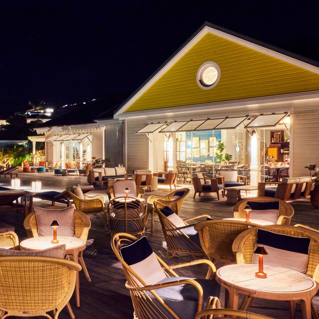 O Bar Mélangé é casual e vibrante, debruçado na piscina com ambiente de praia, convidando os hóspedes a relaxar enquanto apreciam a beleza natural de St. Barth e o mar.
