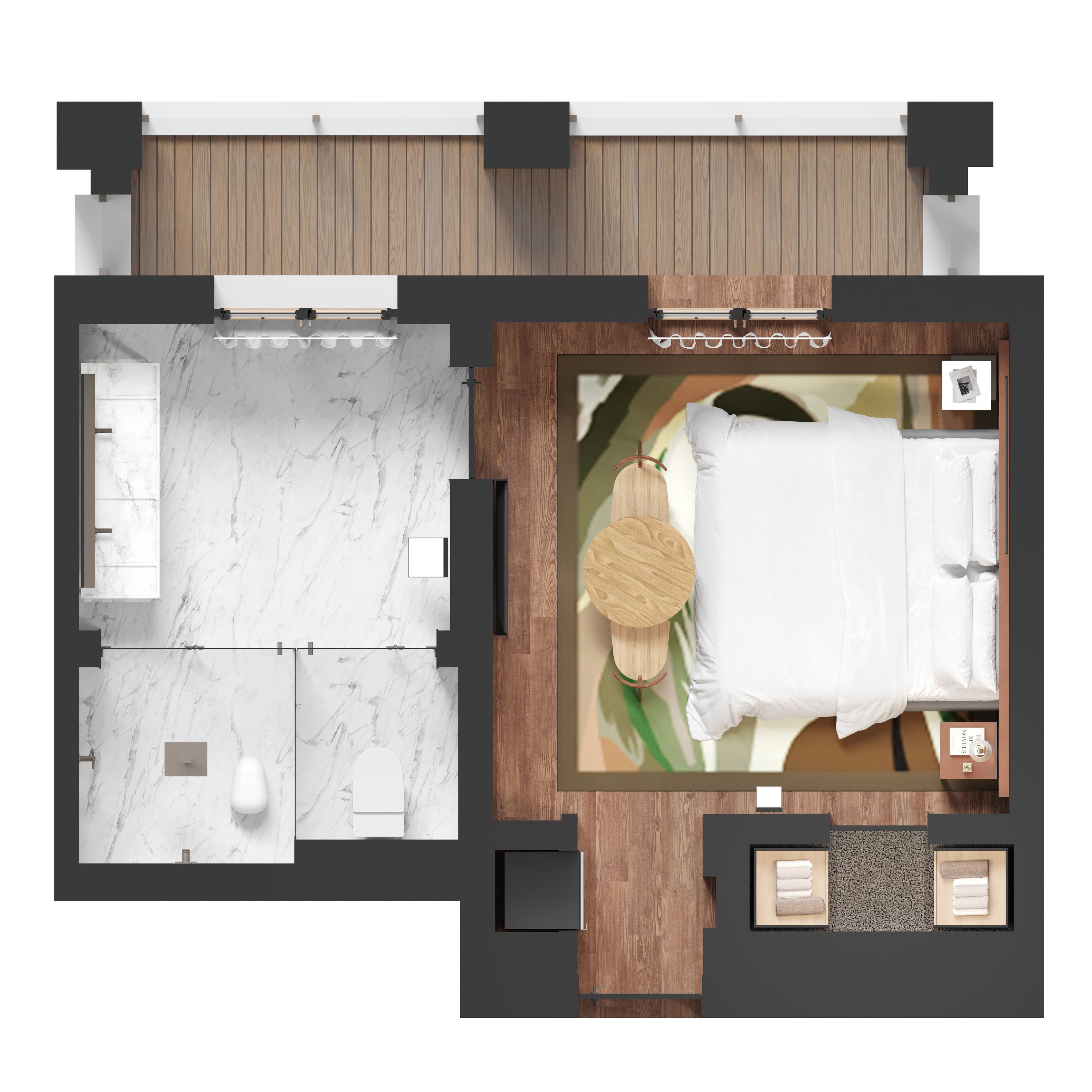 Observe que as imagens das acomodações refletem o estilo geral, decoração e layout do tipo de quarto; variações sutis podem existir nos quartos reais dentro do hotel.