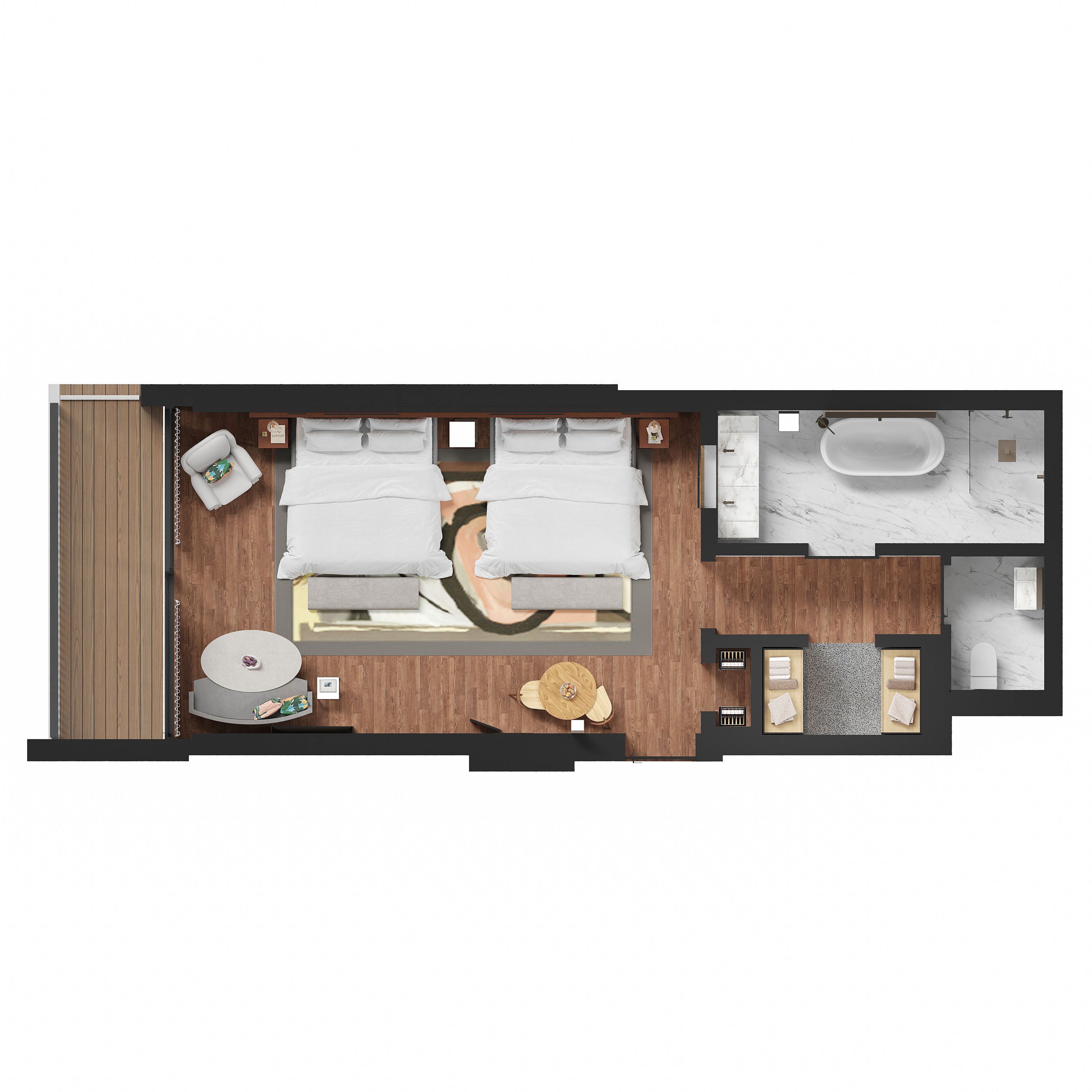 Observe que as imagens das acomodações refletem o estilo geral, decoração e layout do tipo de quarto; variações sutis podem existir nos quartos reais dentro do hotel.