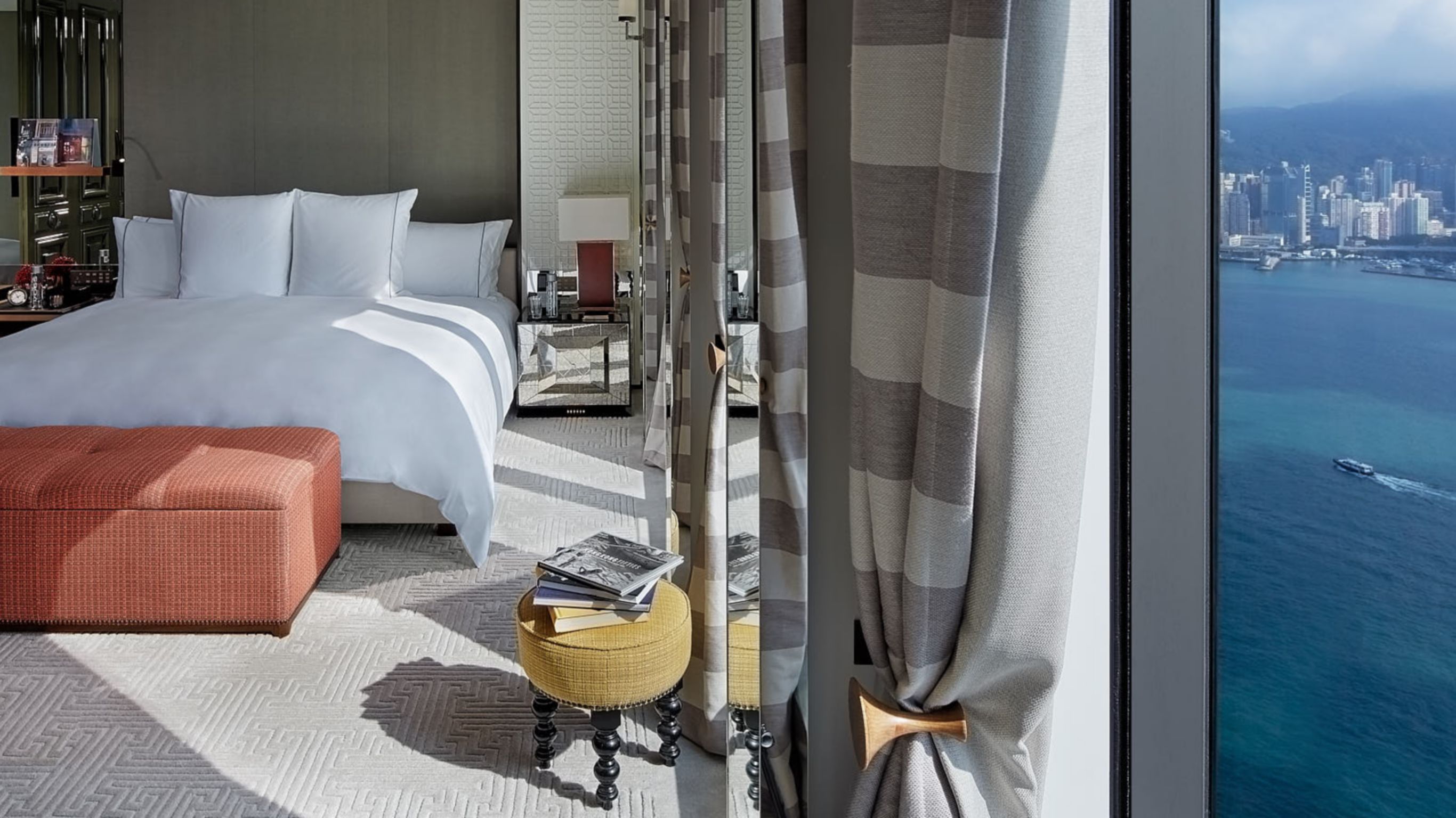 123 平方米(1,323 平方英尺)尊贵海景套房享有别致的海港全景。奢华住宿设计精巧,设施齐全,大理石浴室配备独立浴缸、两个洗手盆和两个淋浴间,并设有宽敞的步入式衣帽间。 入住可享用瑞阁尊贵服务及私人管家服务。