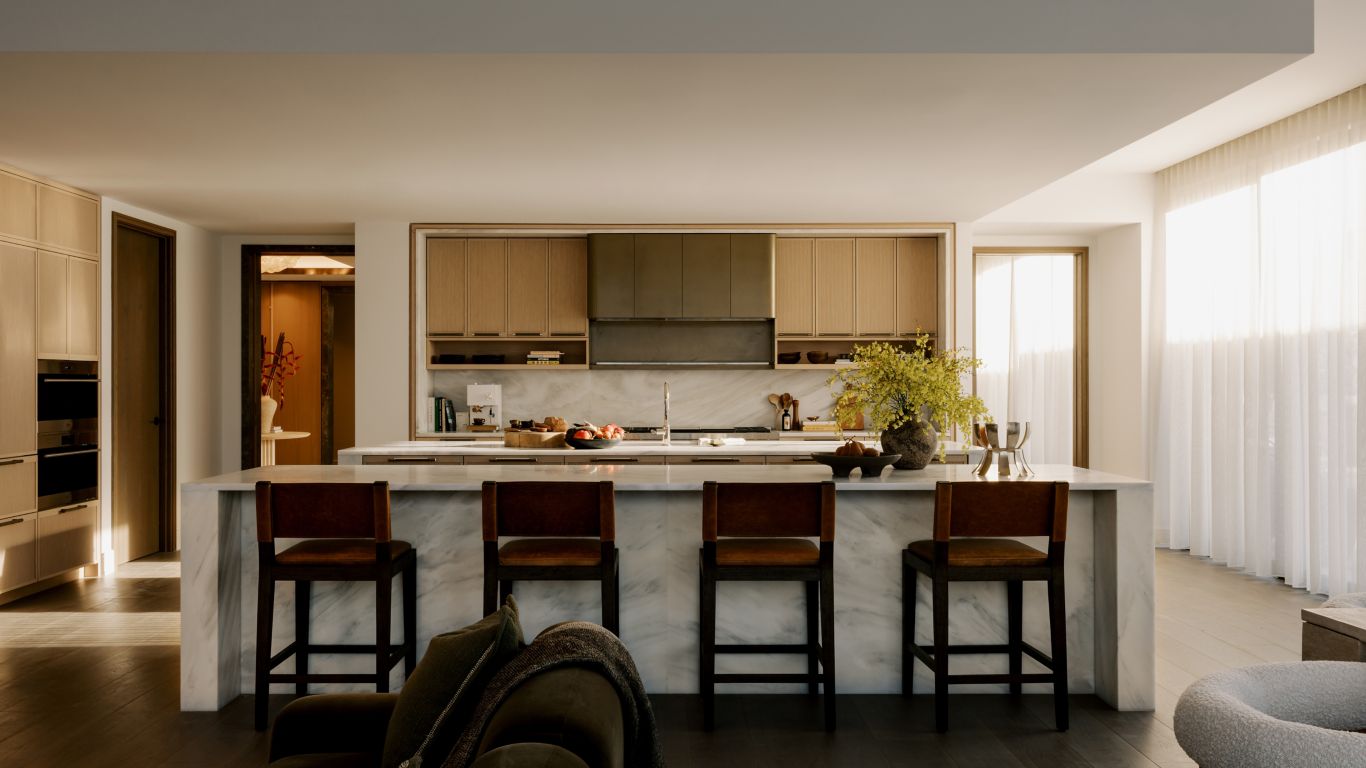 宴会级厨房不仅是精致居家生活的象征,更是与亲友欢聚的点睛之笔。部分府邸厨房配备双超大岛台,点缀以甄选自Molteni & C.的定制木作及来自希腊的手工精选大理石,其中包括曾用于2400多年前帕特农神庙建筑的珍贵Dionysus白色大理石,将历史古韵代入摩登奢华,赋予厨房空间独特的艺术气质。此外,厨房还配备来自Sub-Zero和Wolf的奢华家电及供热设施。所有府邸均设有敞阔露台,实现室内外空间的自然衔接,其中六套府邸更拥有私享泳池、水疗区、露天用餐区及户外厨房,打造独树一帜的度假氛围,仿佛将南加州的悠闲生活搬入府邸之中。此外,每套府邸还设有户内外壁炉、吧台、酒窖、管家备餐间,以及隐蔽式洗衣房和储物间,每一处设计细节皆彰显比佛利山庄园式府邸的至高标准,让居住者于都市繁华间从容感受瑰丽的生活方式。位于顶层的四套复式府邸横跨双层空间,并设有私属楼顶花园,为居住者开辟出一片静谧尊尚的奢享天地。