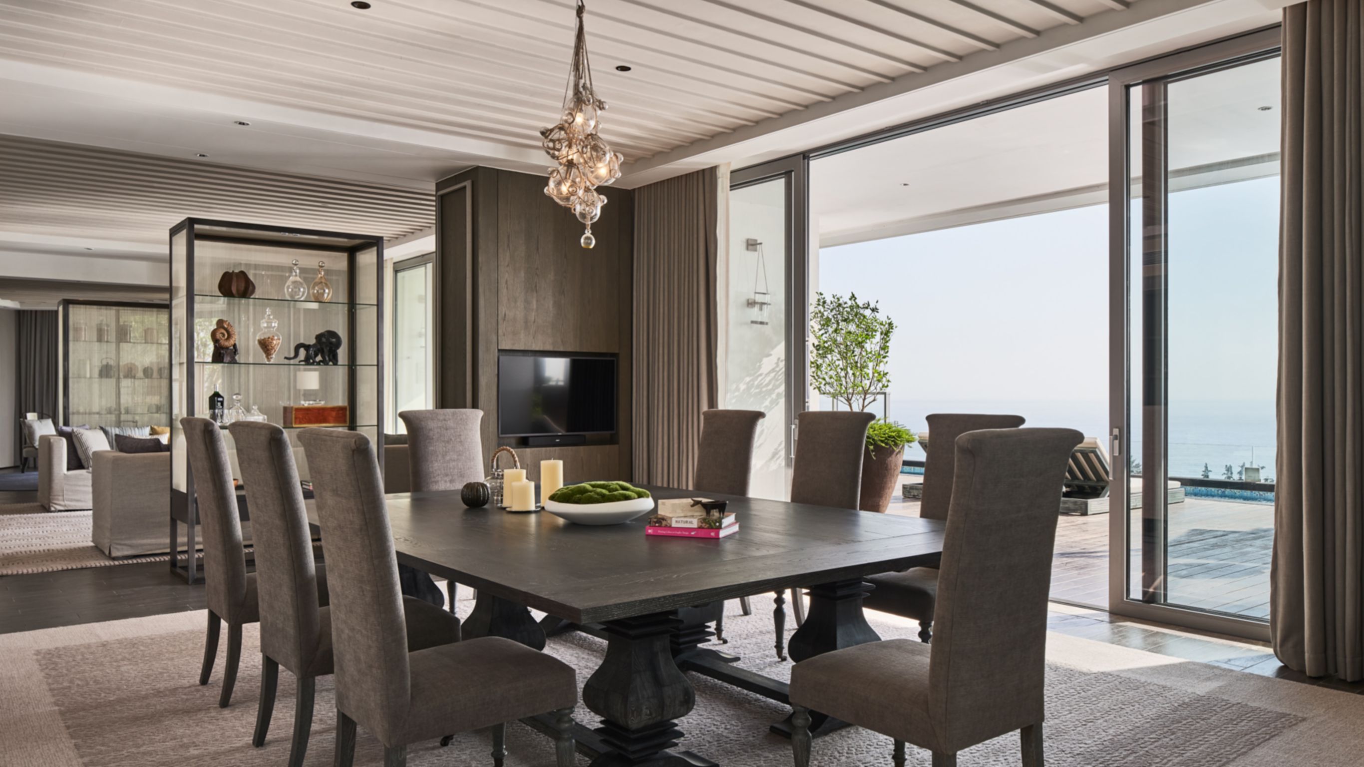 日月府是三亚保利瑰丽酒店面积最大的房间,每个角落均经过精心雕饰,彰显低调奢华的氛围。南中国海壮阔的景观是房间的焦点,这间开阔的房间布设高雅,宾客可在此尽享娱乐休闲,或招待亲朋好友,或举家合欢团圆,或与至爱共度浪漫时刻。从宏大的门厅入口宾客们就开始享受这片热带天堂,这里通向高级客厅与餐厅,环形电视房,录音室和带单独食品储藏室的厨房。套房总面积为 680 平方米,属于住宅式设计,内设客用浴室,步入式衣帽间,以及装有大屏电视的书房。套房阳台还设有独立露台恒温泳池,池畔设有太阳椅,宾客可在午后安憩午睡,或在晚上观星。日月府位于酒店 6 层。
